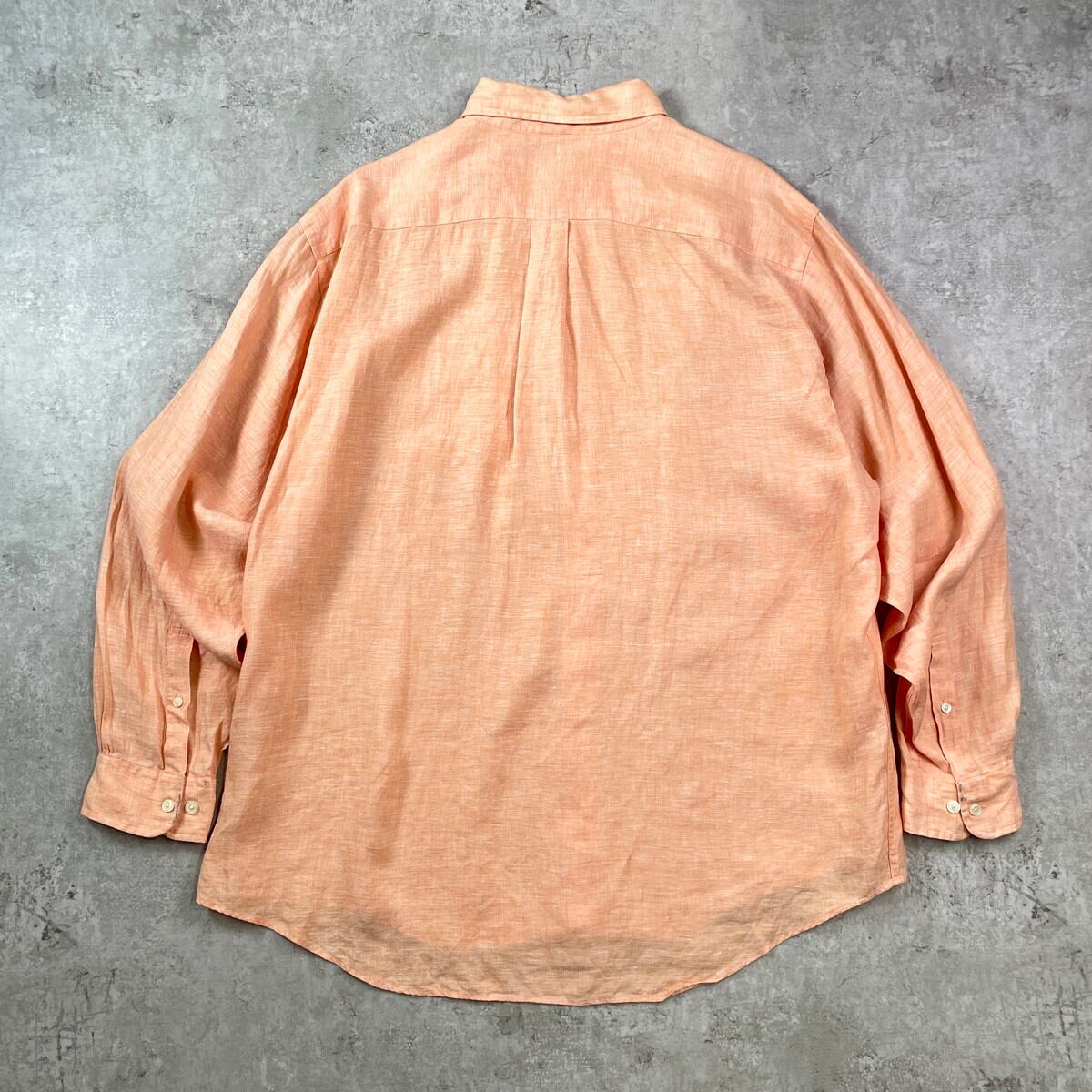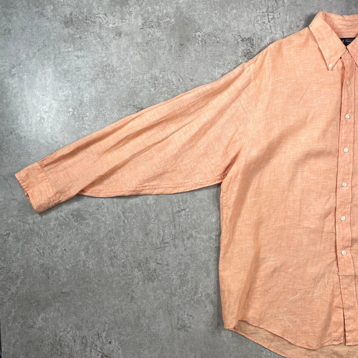 ■Brooks Brothers ブルックスブラザーズ 無地 リネンシャツ ボタンダウンシャツ メンズ2XL相当 古着 ビッグサイズ 大きいサイズ ペールオレンジ 【長袖シャツ】/オレンジ