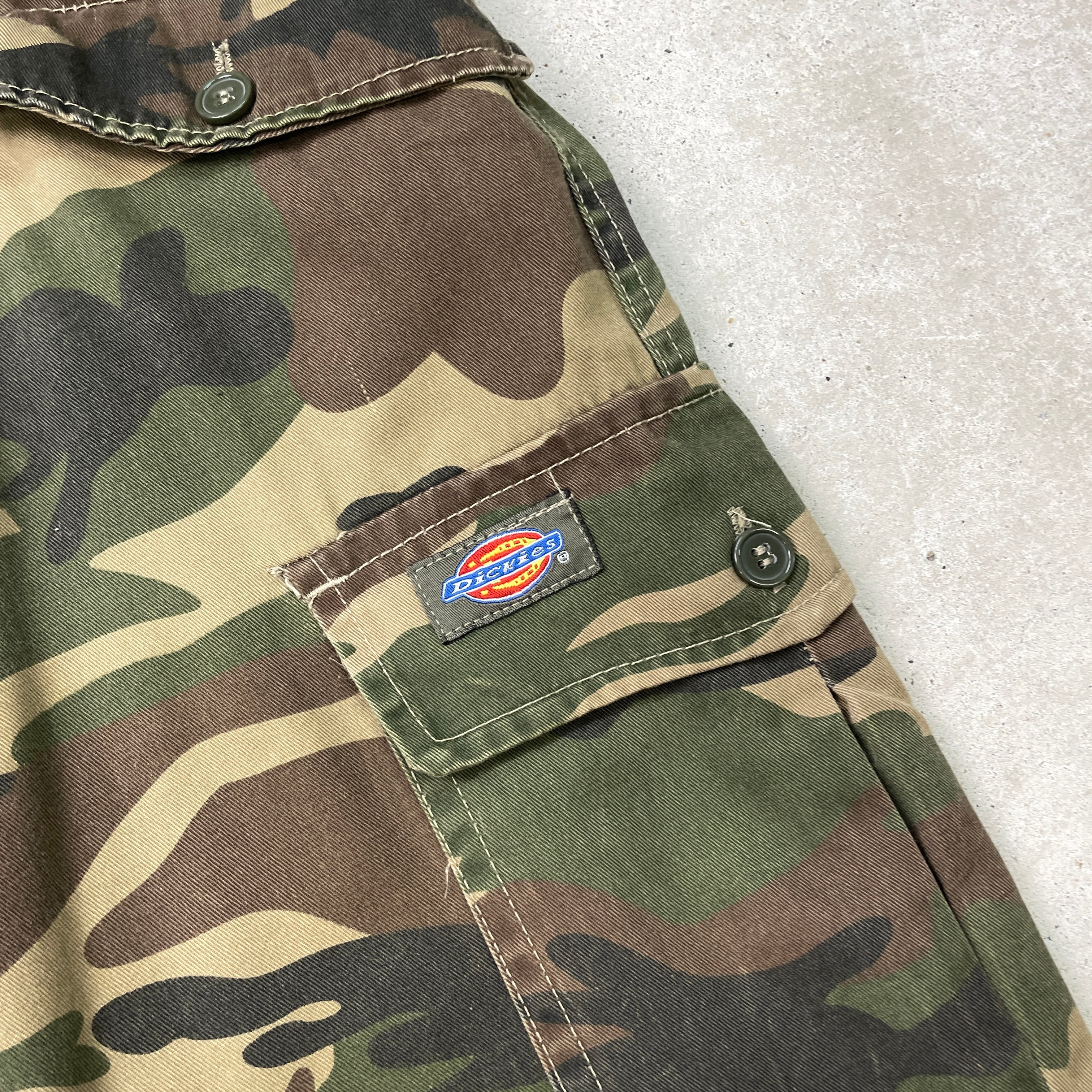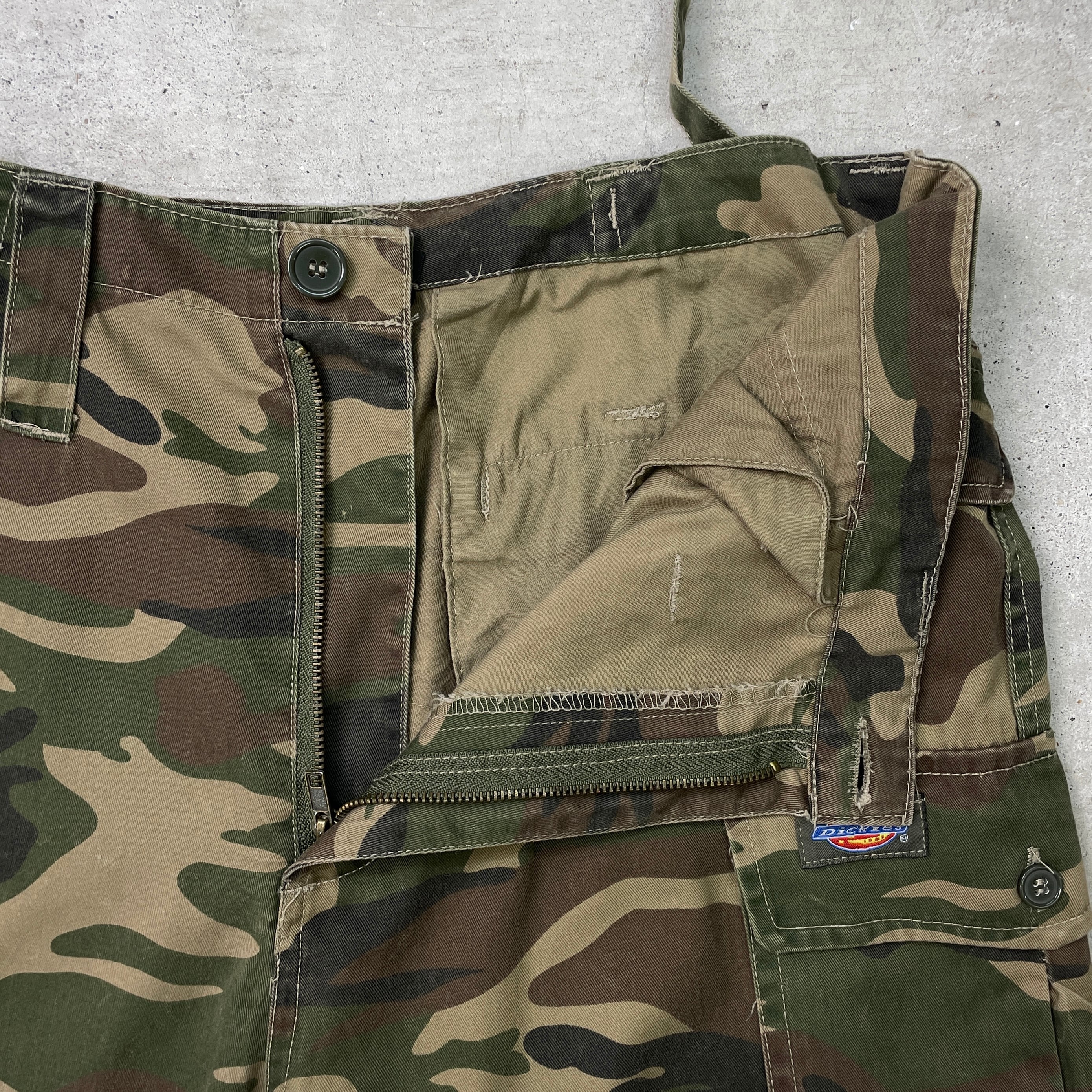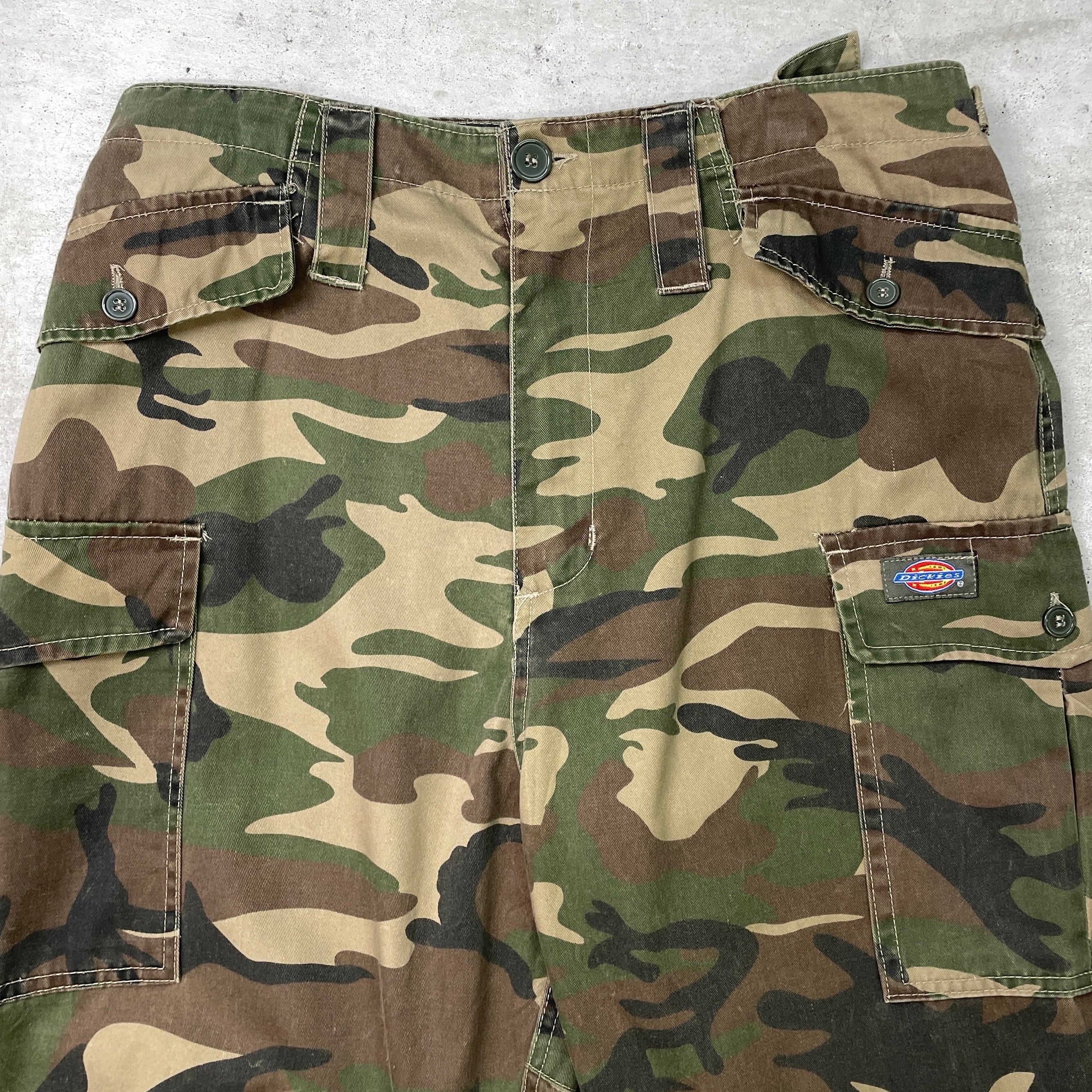 Dickies ディッキーズ ミリタリーカーゴパンツ カモ ダブルニー メンズW34 古着 ドローコード付き ブラウン カーキ 【ワークパンツ】/マルチカラー