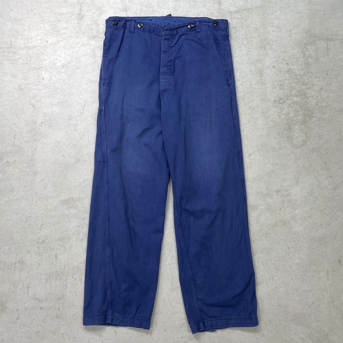 70年代 ドイツ軍 HBT コットンツイルパンツ メンズW34相当 古着 70s ヴィンテージ VINTAGE ユーロミリタリーパンツ ナス紺【ミリタリーパンツ】/ネイビー