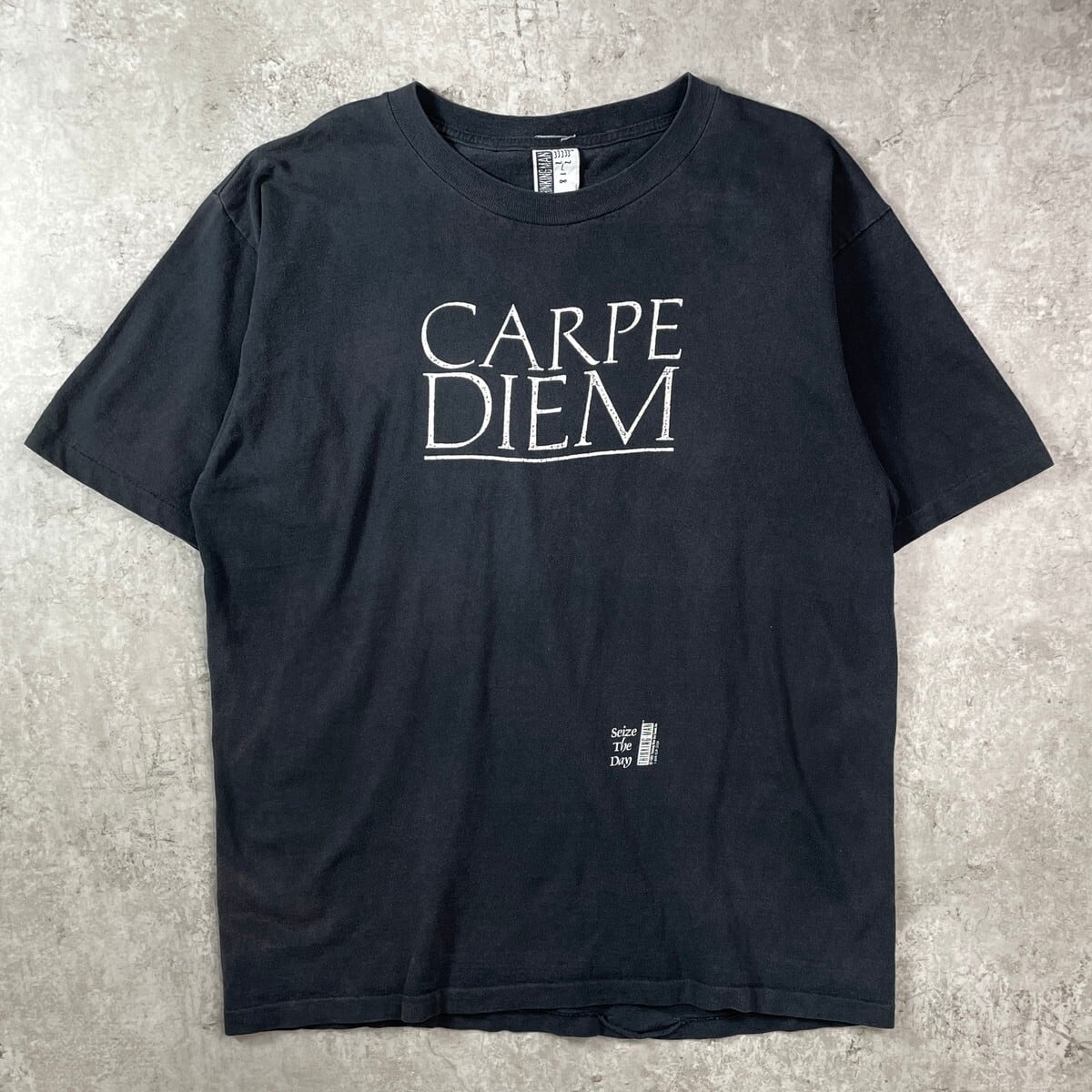 80年代 USA製 CARPE DIEM プリントTシャツ メンズL~XL 古着 80s VINTAGE ヴィンテージ シングルステッチ ラテン語 黒色【Tシャツ】/ブラック【SS50】