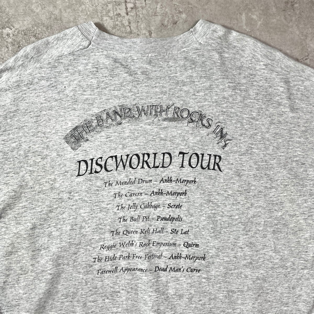 80年代 DISCWORLD ディスクワールド 架空ツアー プリントTシャツ メンズXL相当 古着 80s VINTAGE ヴィンテージ シングルステッチ ファンタジー小説 テリー・プラチェット 灰色【Tシャツ】/グレー【SS50】