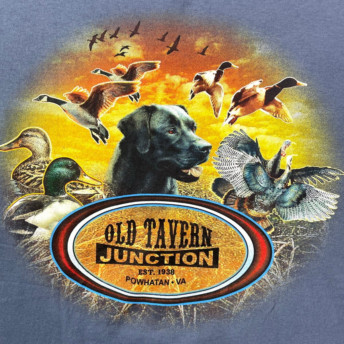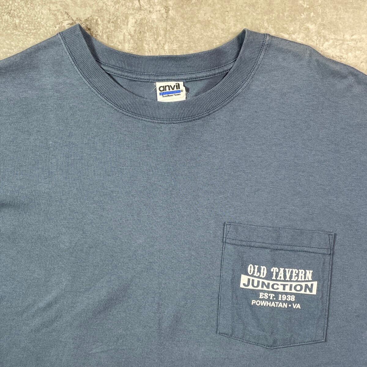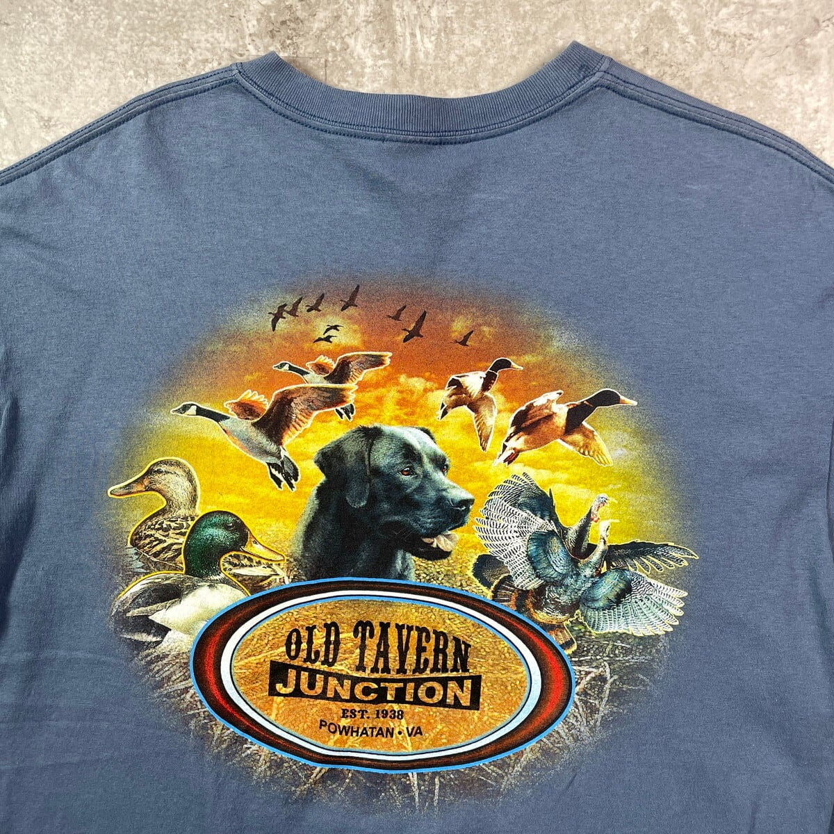 ■Old Tavern Junction レストラン アニマル プリントTシャツ ポケT メンズXL 古着 ポケットTシャツ 薄群青色【Tシャツ】/ブルー