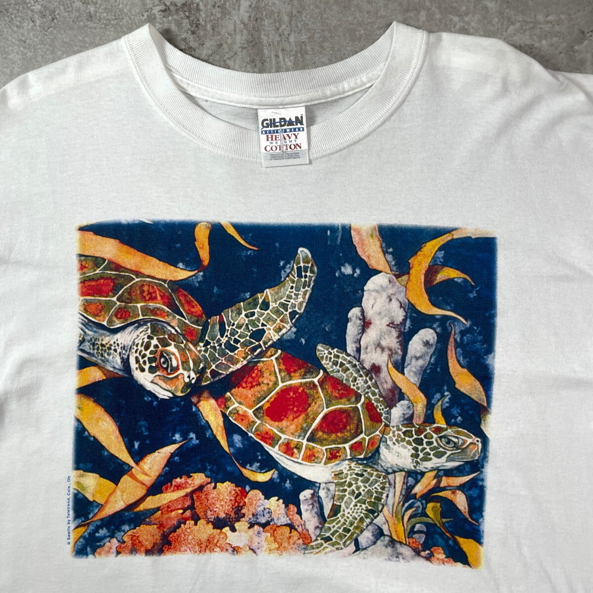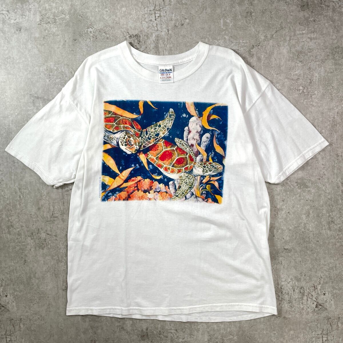 ■00年代 ウミガメ アニマル アート プリント Tシャツ メンズXL 古着 00s ヴィンテージ ビンテージ 動物 ホワイト 白 大きいサイズ【Tシャツ】【SA2501-50】