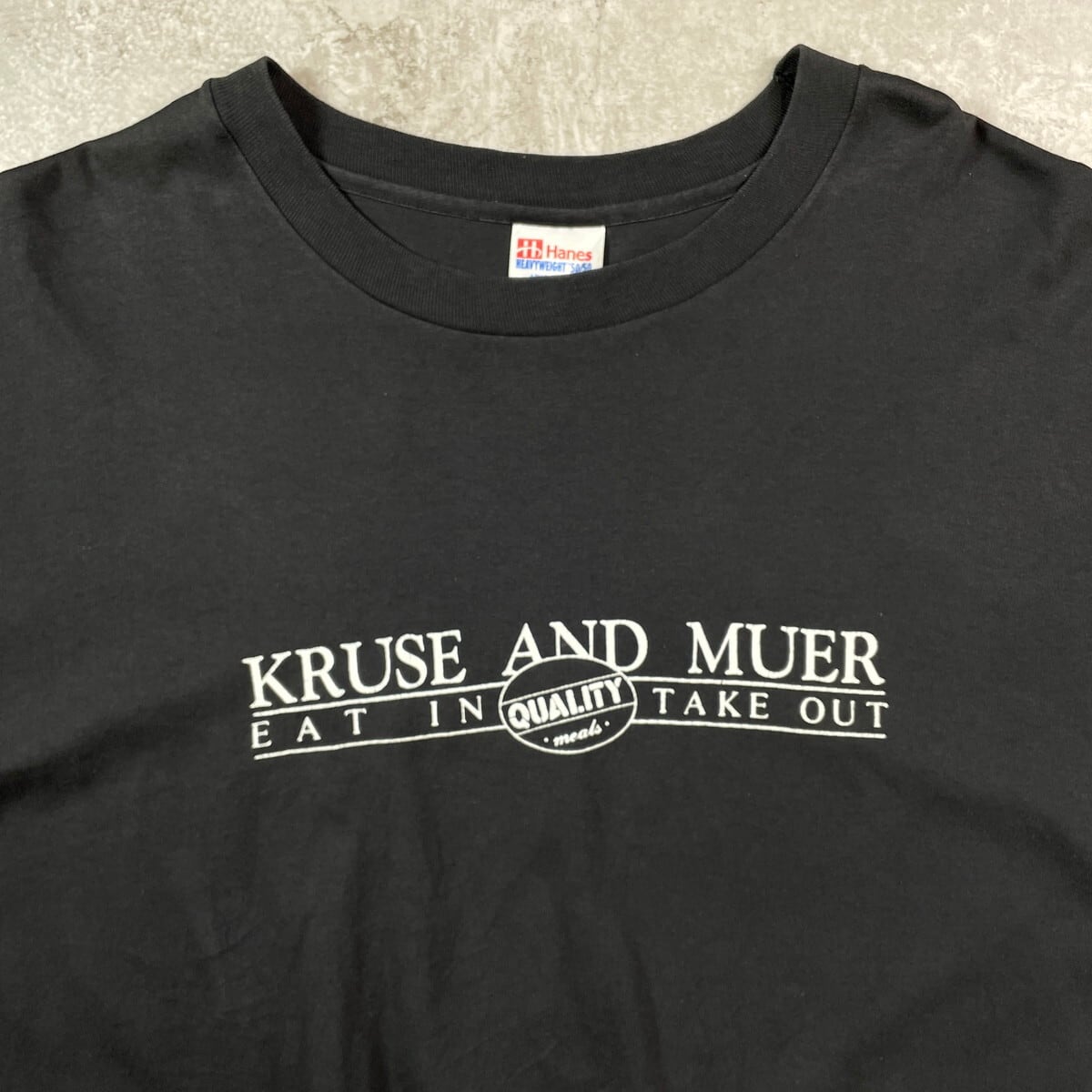 ■90年代 KRUSE AND MUER レストラン 企業プリントTシャツ メンズXL 古着 90s VINTAGE ヴィンテージ 袖シングルステッチ 黒【Tシャツ】/ブラック