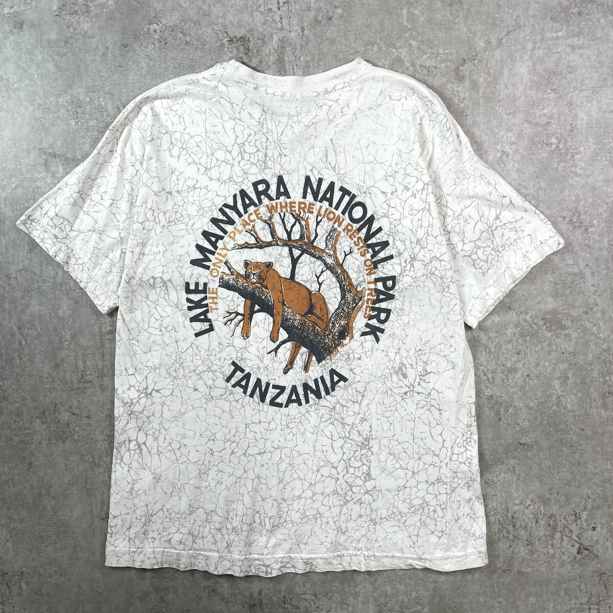 90年代 タンザニア マニャラ湖 国立公園 オールオーバープリント Tシャツ メンズXXL相当 古着 両面プリント 総柄 90s ヴィンテージ ビンテージ【Tシャツ】/ホワイト