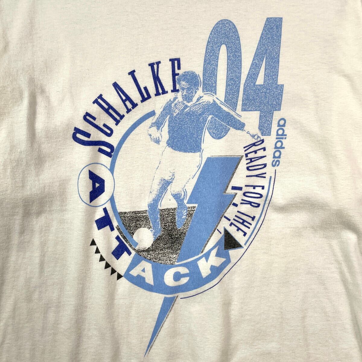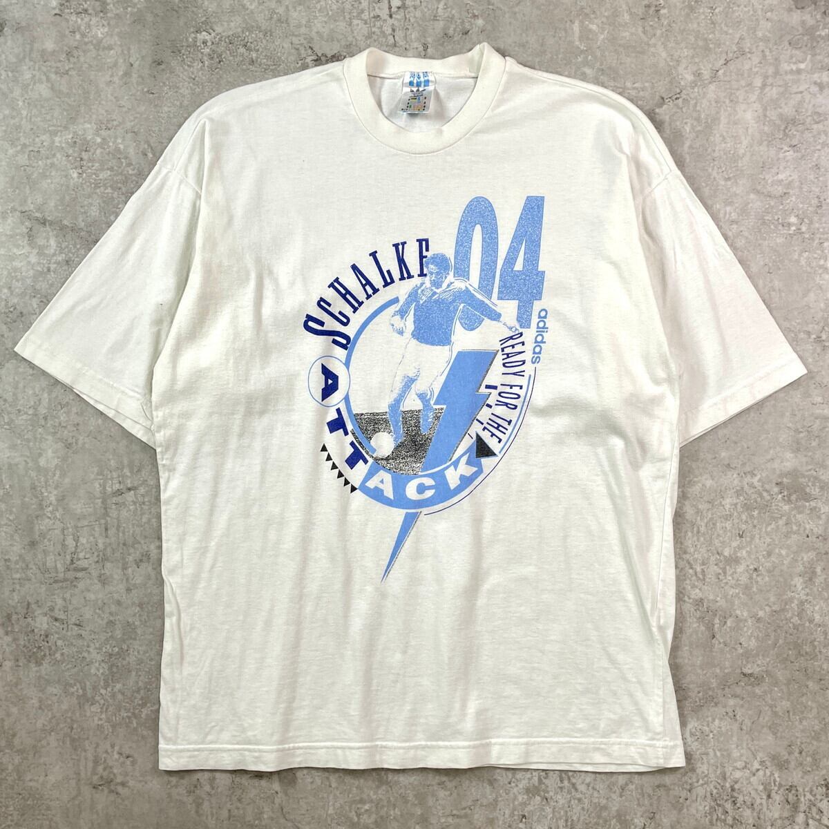 90年代 adidas アディダス SCHALKE04 サッカー プリントTシャツ メンズM相当 古着 90s ヴィンテージ VINTAGE ドイツ スポーツ クラブチーム 白色【Tシャツ】/ホワイト【SS50】
