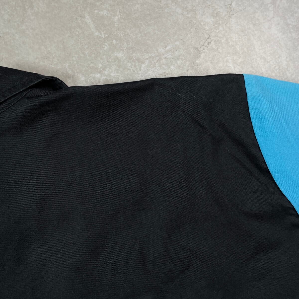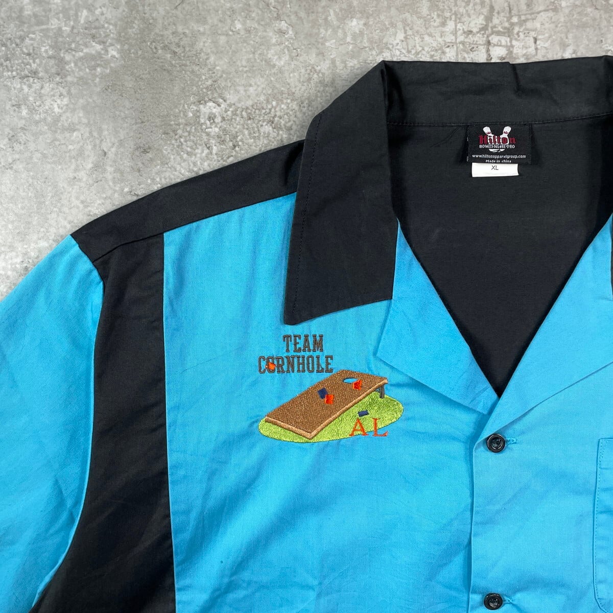 ■HILTON ヒルトン ツートンカラー ワンポイント刺繍 ボーリングシャツ メンズXL 古着 開襟 ボックスシャツ オープンカラー ブラック×ライトブルー 黒 水色【半袖シャツ】/ブルー