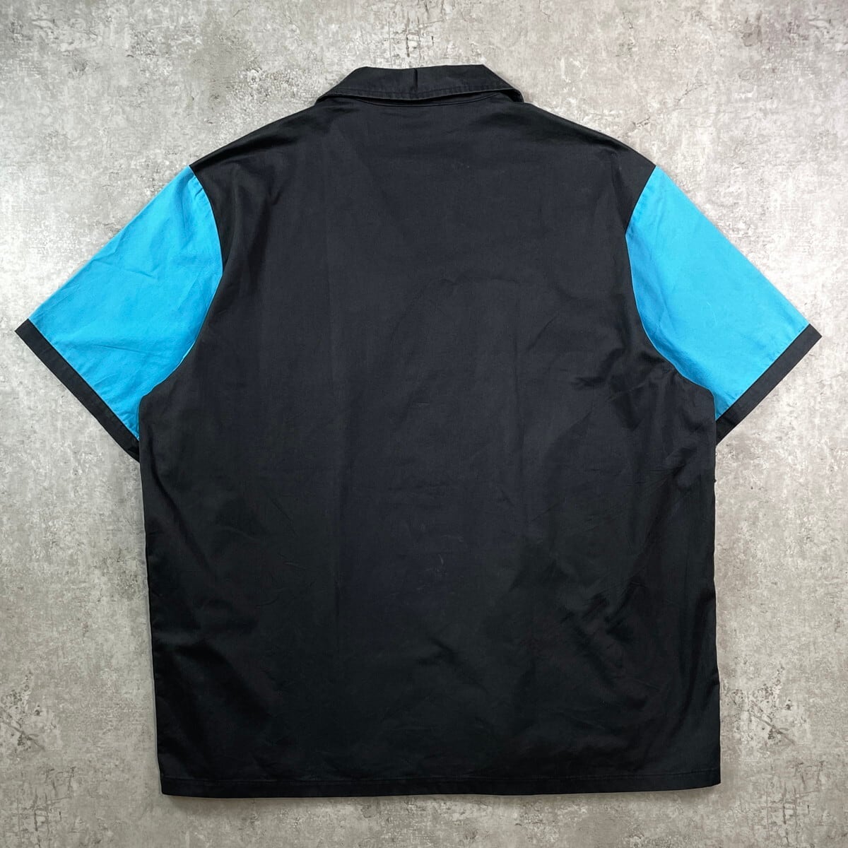 HILTON ヒルトン ツートンカラー ワンポイント刺繍 ボーリングシャツ メンズXL 古着 開襟 ボックスシャツ オープンカラー ブラック×ライトブルー 黒 水色【半袖シャツ】/ブルー【SS50】