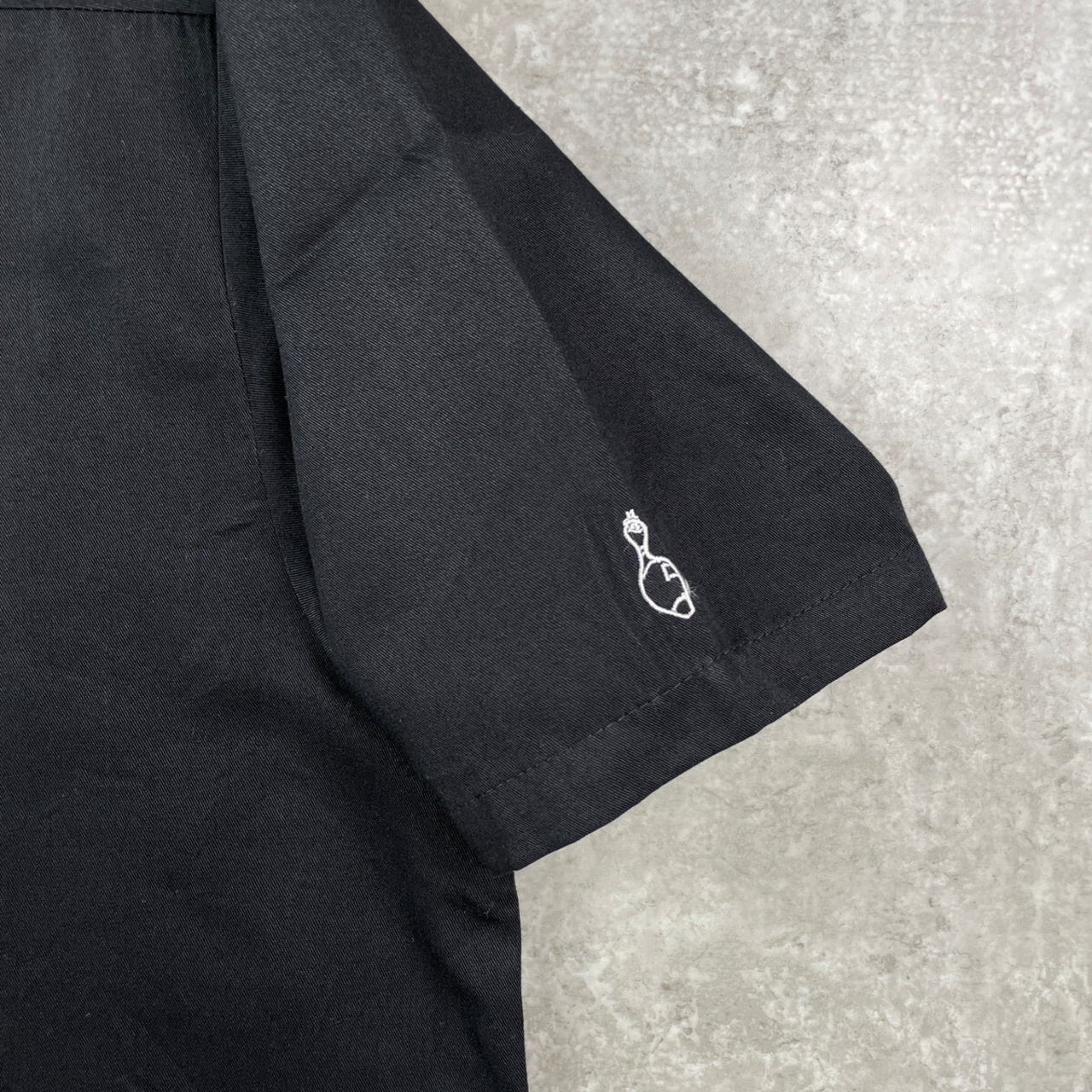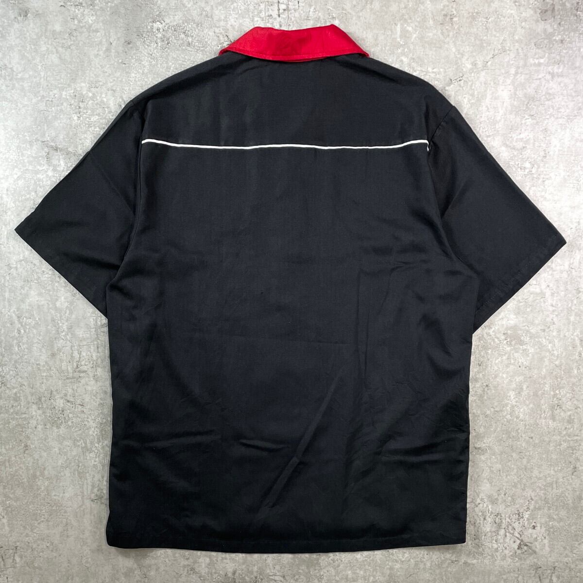 ■Cruisin USA クルージン 2トーン 切替 ワンポイント刺繍 ボウリングシャツ メンズL 古着 ボーリングシャツ 開襟 オープンカラー ブラック×レッド 黒 赤【半袖シャツ】/ブラック