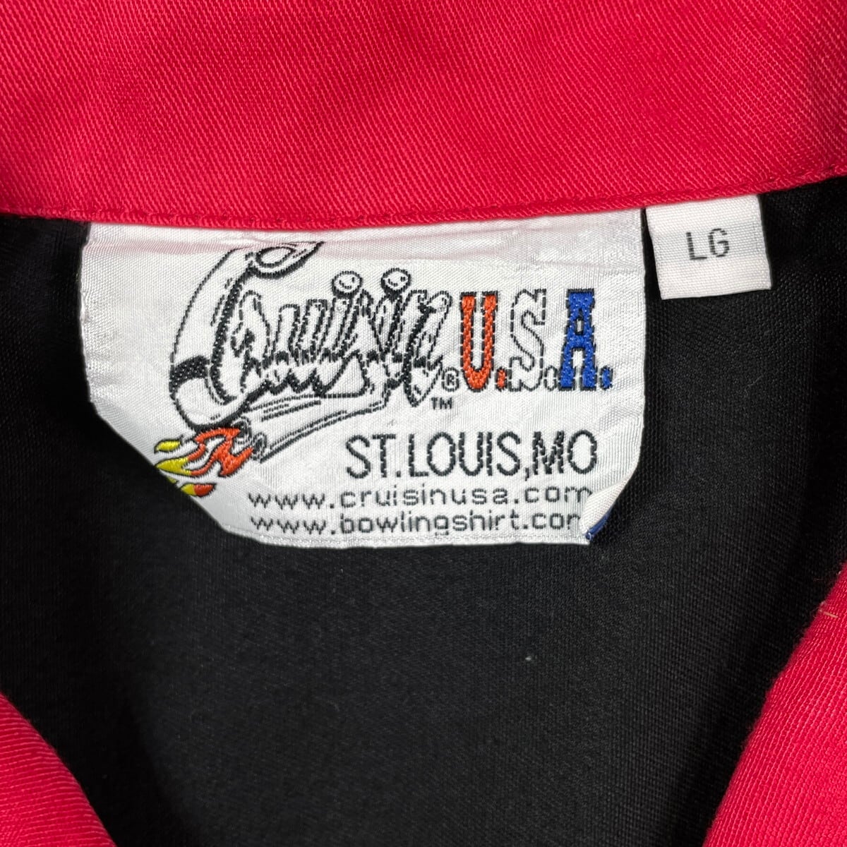 Cruisin USA クルージン 2トーン 切替 ワンポイント刺繍 ボウリングシャツ メンズL 古着 ボーリングシャツ 開襟 オープンカラー ブラック×レッド 黒 赤【半袖シャツ】/ブラック【SS50】