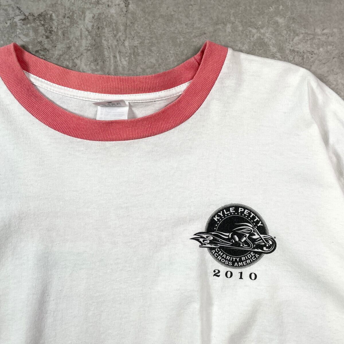 ■Krispy Kreme Doughnuts 企業ロゴプリント リンガーTシャツ メンズXL 古着 KYLE PETTY レーシング クリスピー・クリーム・ドーナツ ホワイト×ピンク【Tシャツ】/ホワイト