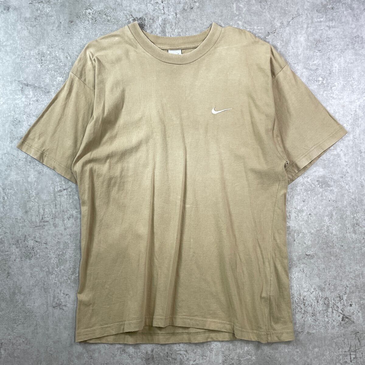 90年代 NIKE ナイキ スウォッシュ ワンポイントロゴ刺繍 Tシャツ メンズL 古着 90s ヴィンテージ VINTAGE 【Tシャツ】/ベージュ【SS50】
