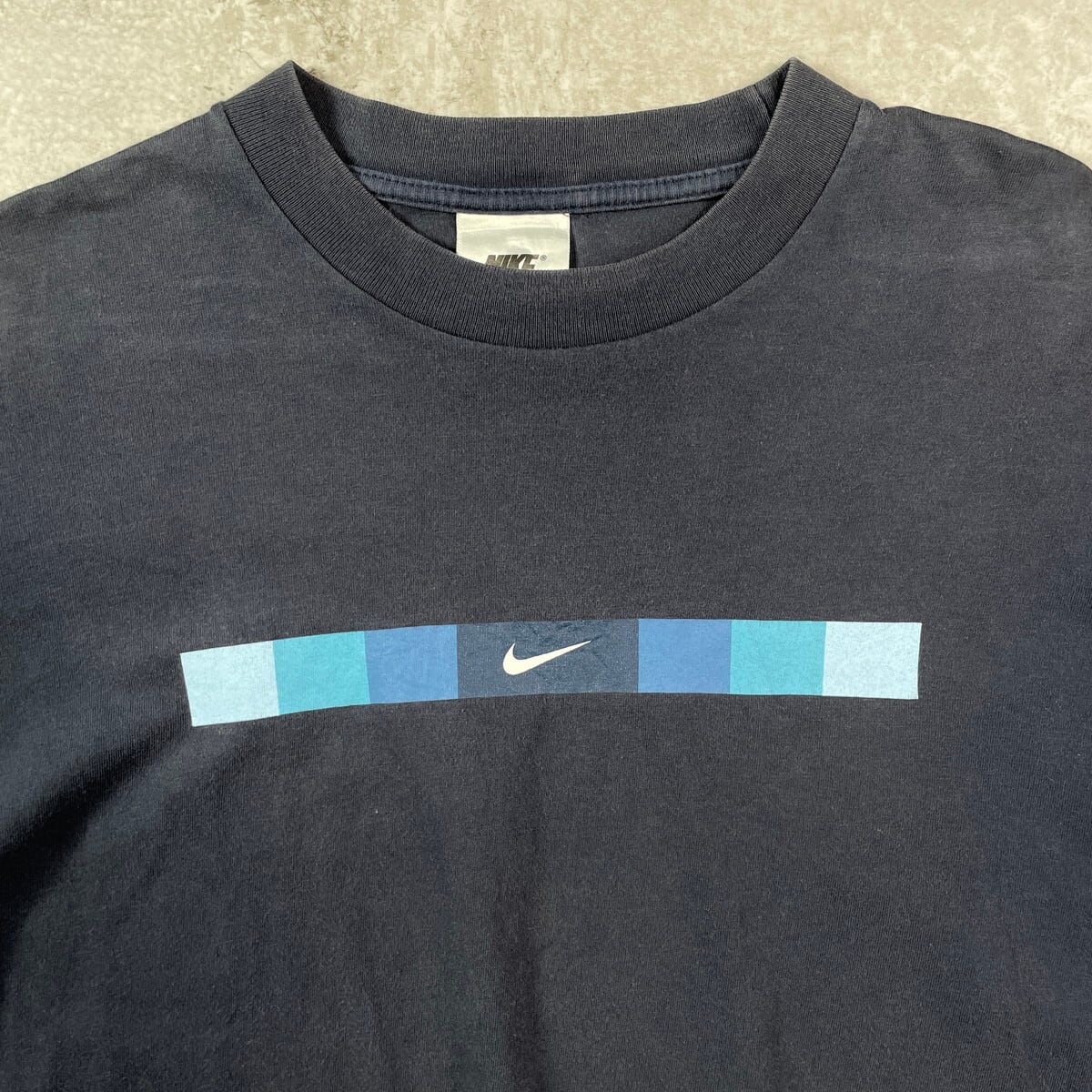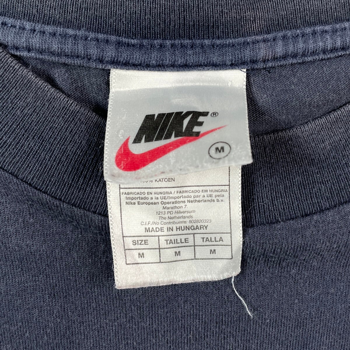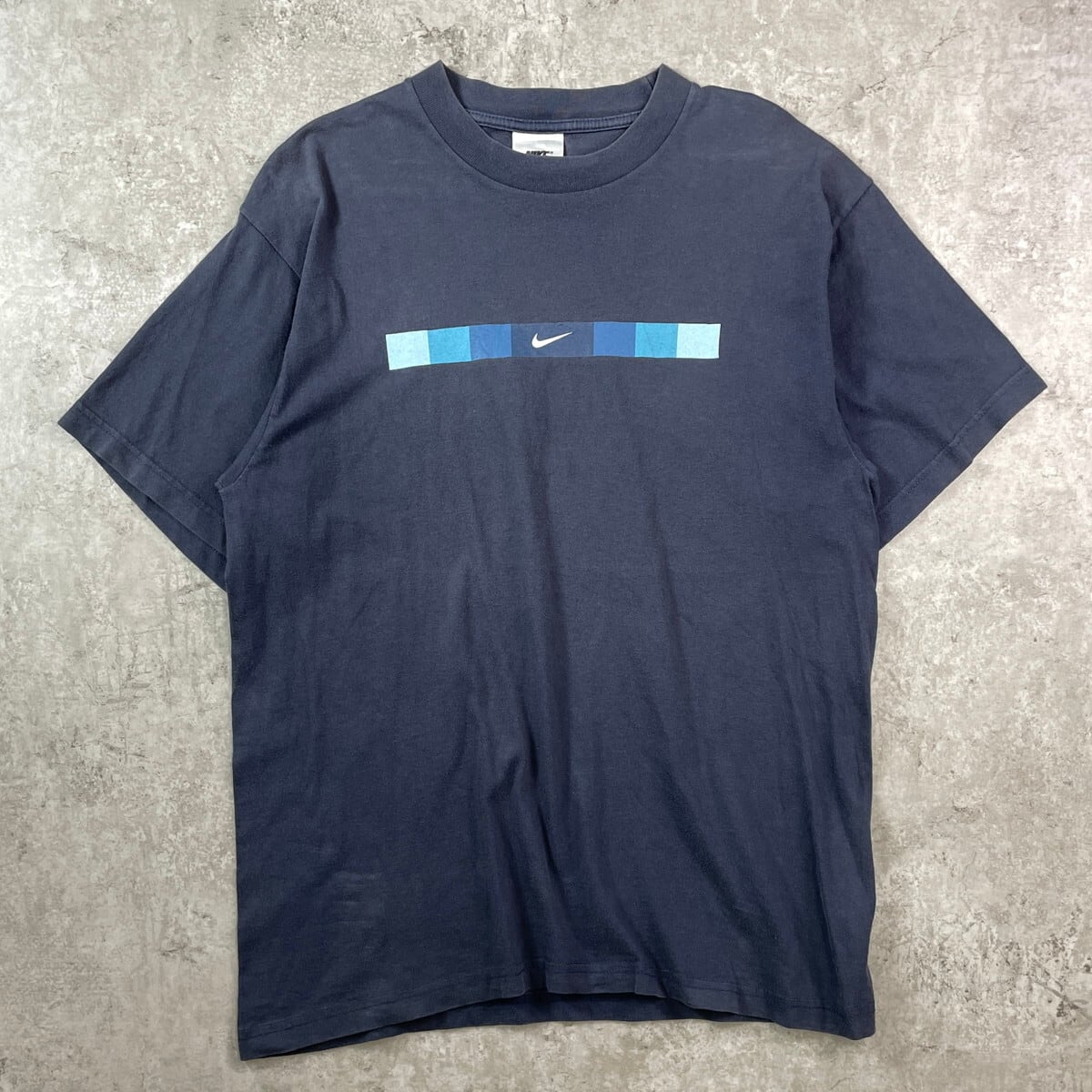 ■90年代 NIKE ナイキ スウォッシュロゴ プリント Tシャツ メンズM 古着 90s ヴィンテージ VINTAGE 紺色【Tシャツ】/ネイビー