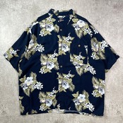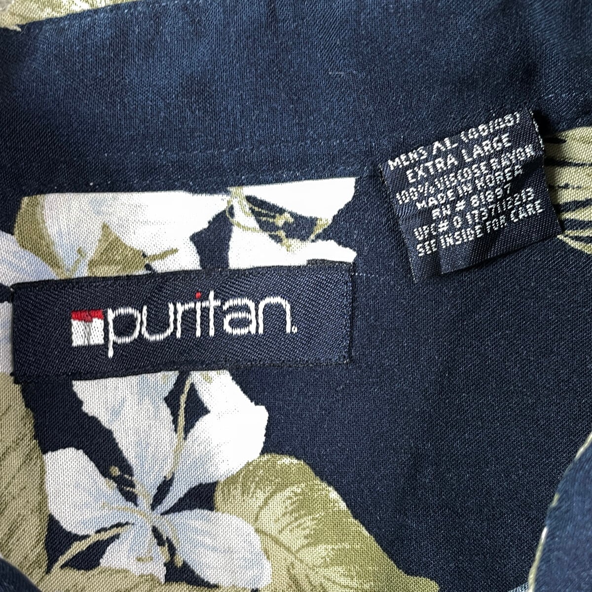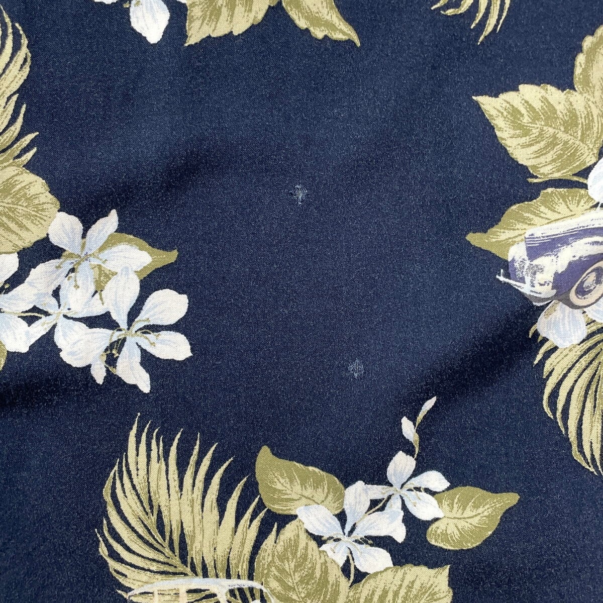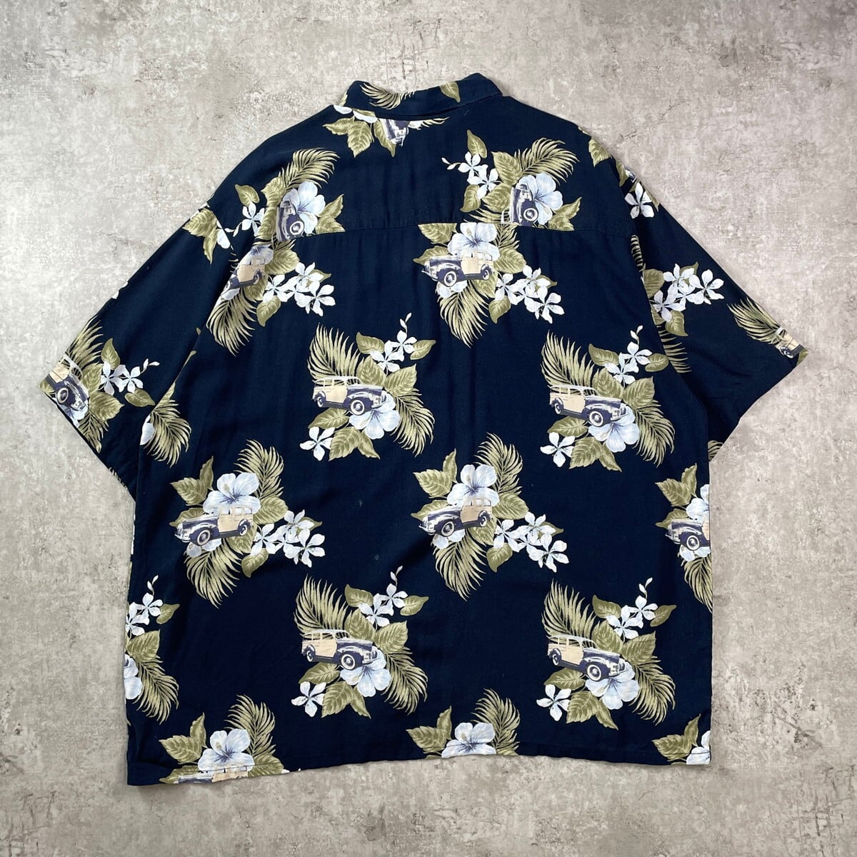 ■PURITAN アロハシャツ 花柄 クラシックカー 半袖シャツ メンズ2XL相当 古着 アメカジ レーヨン 紺色【半袖シャツ】/ネイビー
