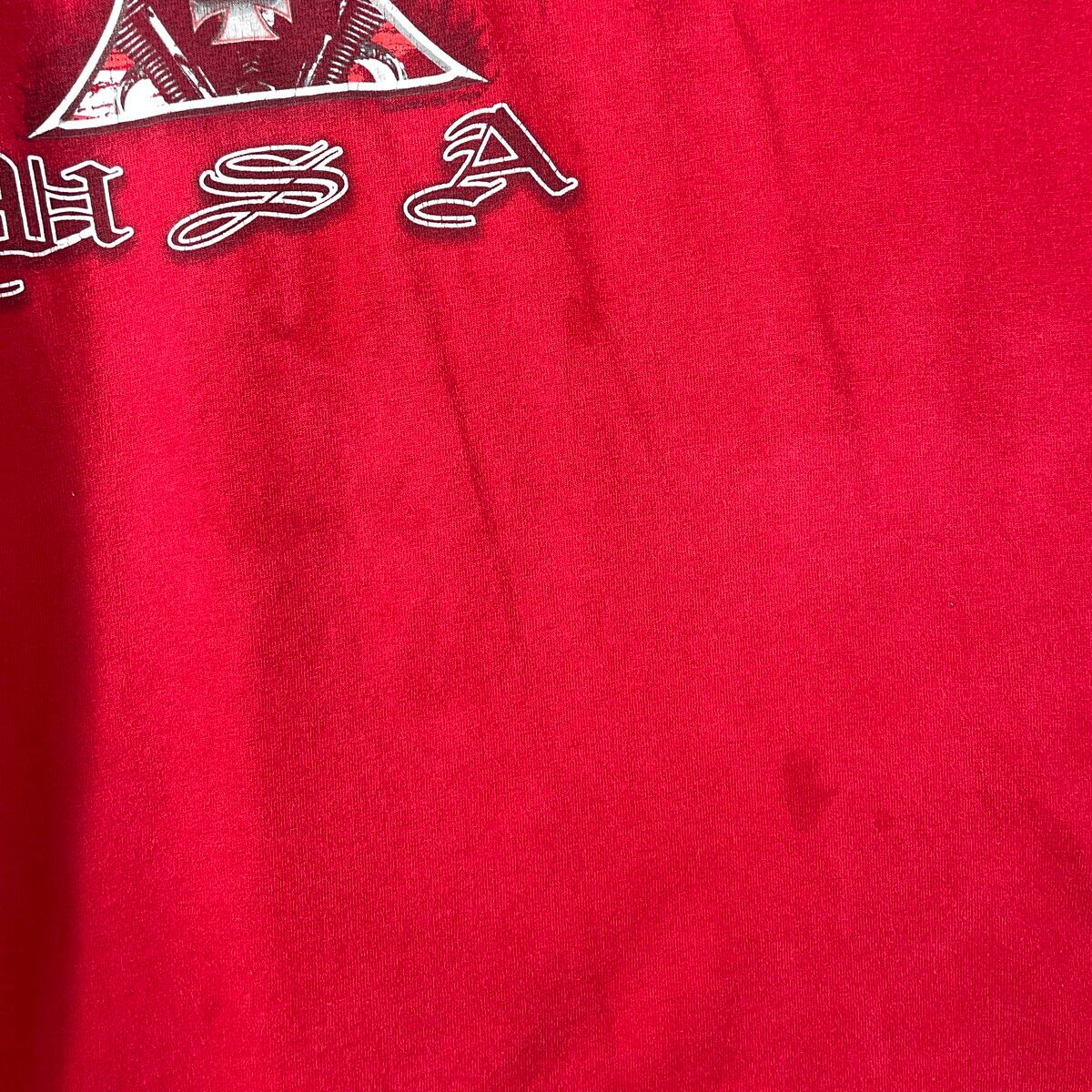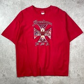 ■FREEDOM USA アイアンクロス イーグル バイク プリント Tシャツ メンズ2XL 古着 モーターサイクル ビッグサイズ 大きいサイズ 赤色【Tシャツ】/レッド