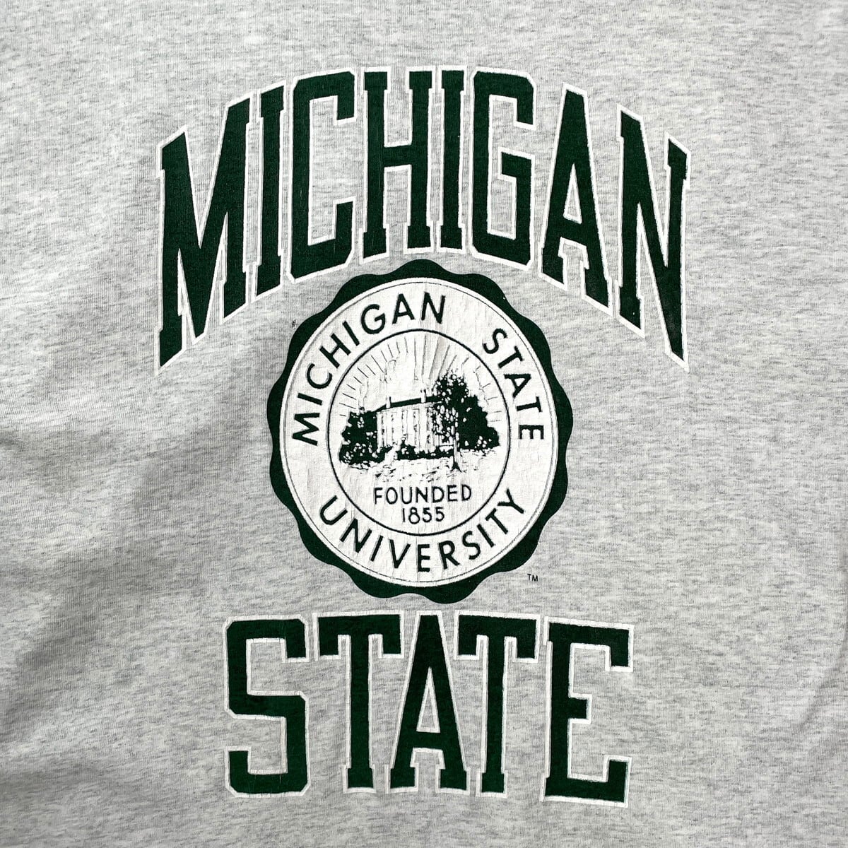 ■90年代 USA製 MICHIGAN STATE カレッジ プリントTシャツ メンズXL 古着 90s シングルステッチ ヴィンテージ VINTAGE ミシガン州大学 ライトグレー【Tシャツ】/グレー