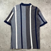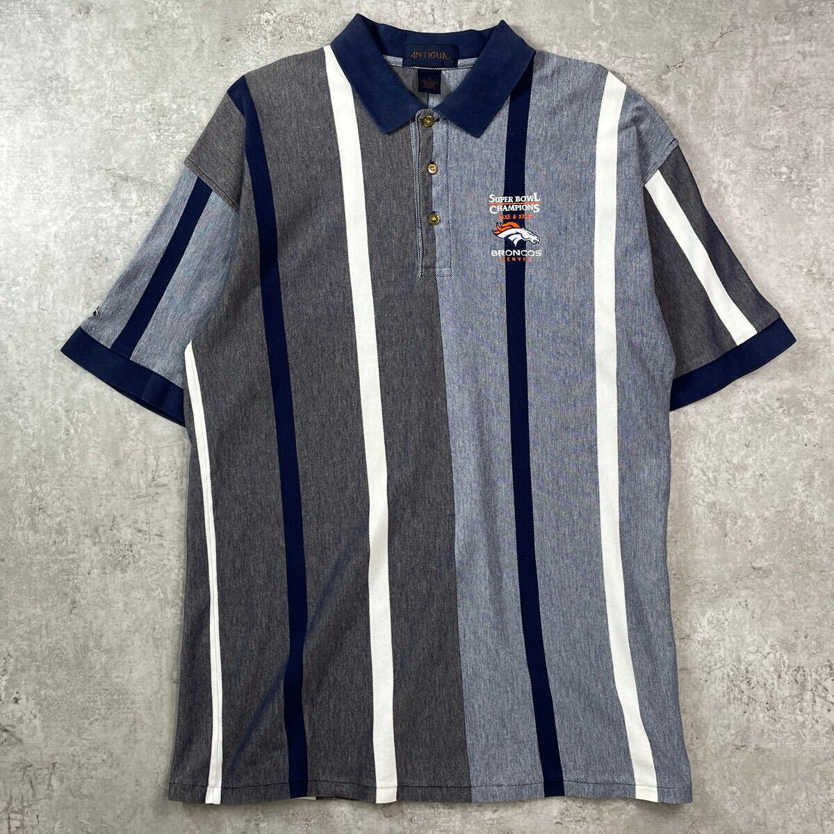 ■NFL DENVER BRONCOS チームロゴ刺繍 鹿の子 ストライプ ポロシャツ メンズL 古着 デンバー・ブロンコス アメフト ネイビー ホワイト ブルー【ラガーシャツ・ポロシャツ】/マルチカラー