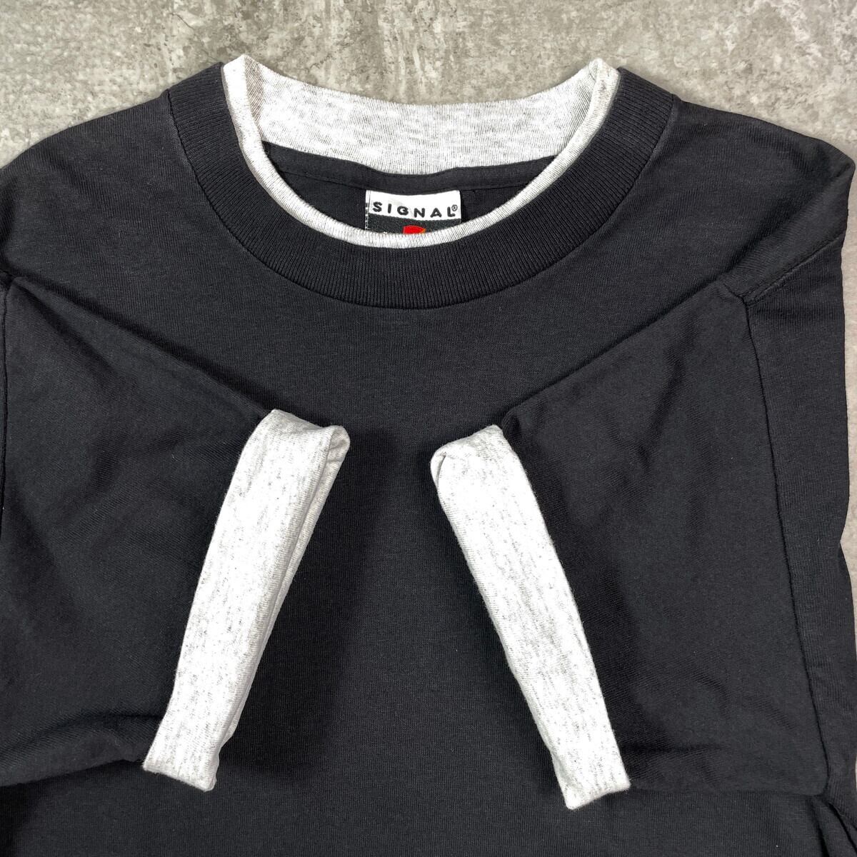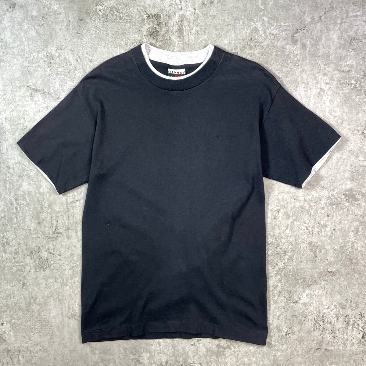 90年代 USA製 ブランク フェイクレイヤード Tシャツ 無地 メンズS レディース 古着 90s シングルステッチ ヴィンテージ VINTAGE ブラック×グレー【Tシャツ】/ブラック【SS50】