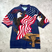 90年代 LINKSPORT イーグル 星条旗 鹿の子 総柄ポロシャツ メンズ2XL 古着 90s VINTAGE ヴィンテージ ビッグサイズ 大きいサイズ【ポロシャツ】/ネイビー【SS50】