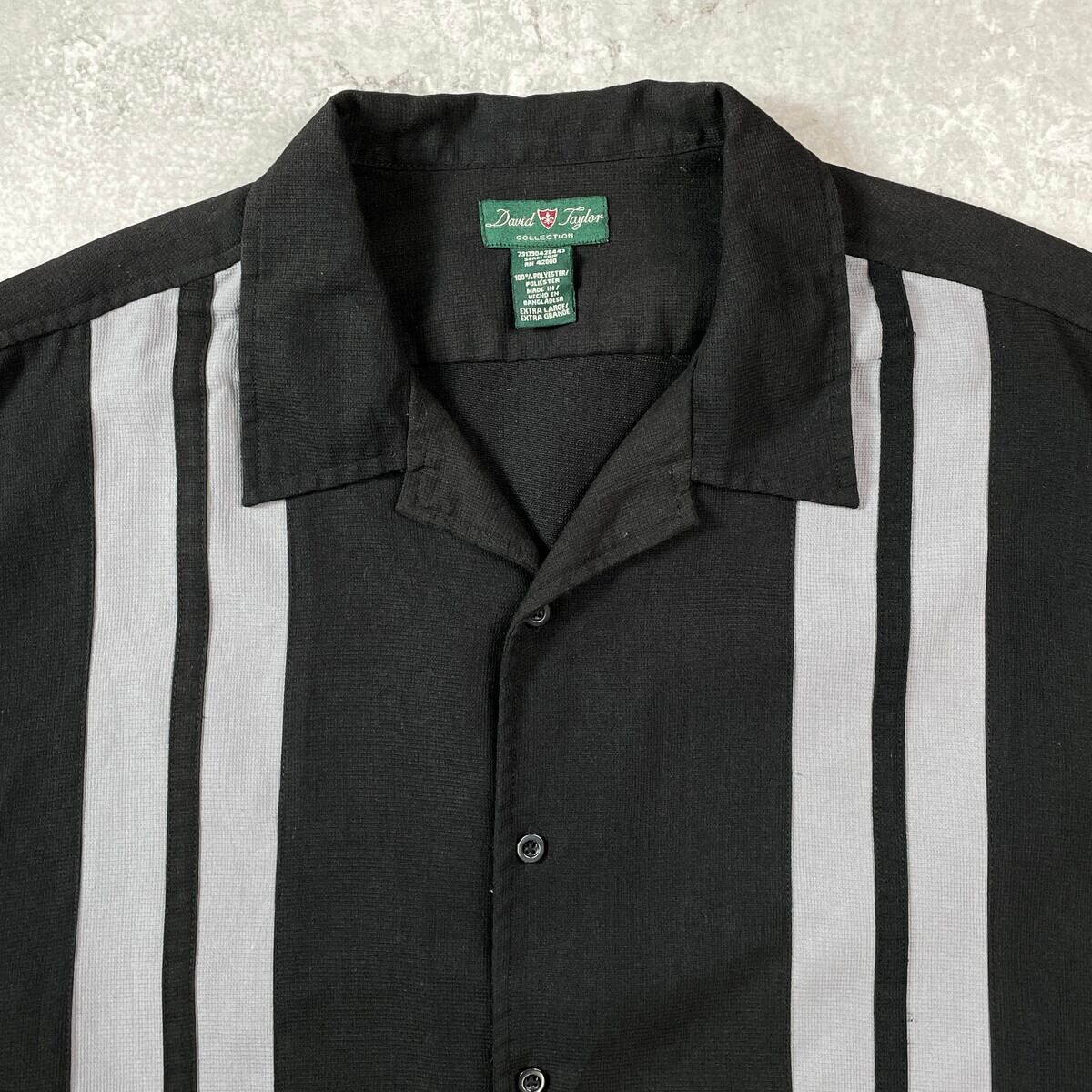 ■DAVID TAYLOR 2トーン 半袖 開襟シャツ メンズ2XL相当 古着 オープンカラー ビッグサイズ 大きいサイズ ブラック×グレー 黒【半袖シャツ】/ブラック