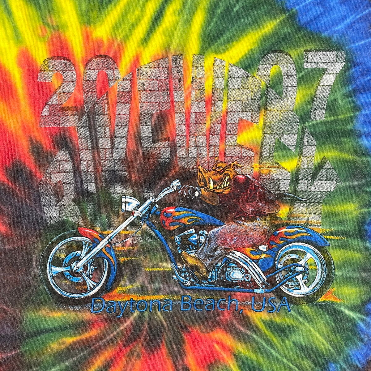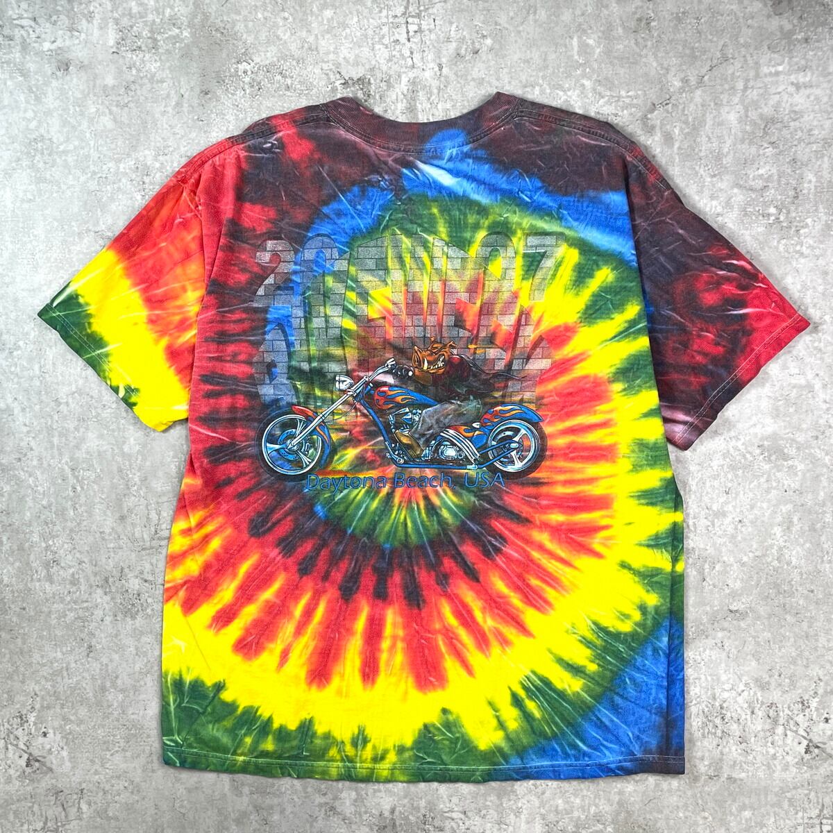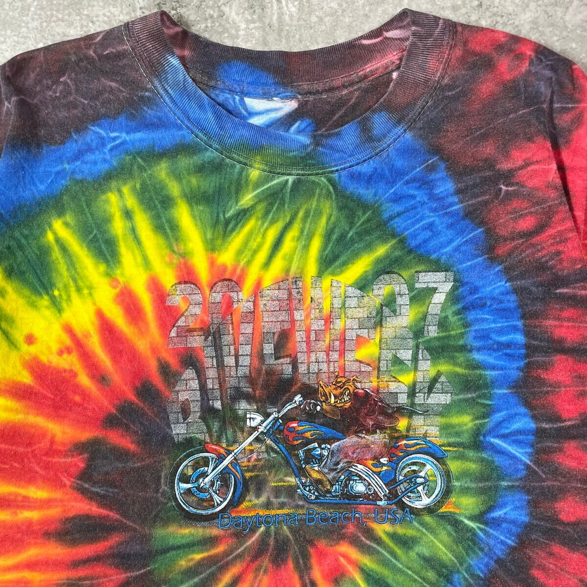 00年代 Daytona Beach USA BIKE WEEK タイダイ 両面プリント Tシャツ メンズXL相当 古着 00s VINTAGE ヴィンテージ モーターサイクル バイクTシャツ バックプリント【Tシャツ】/マルチカラー【SS50】