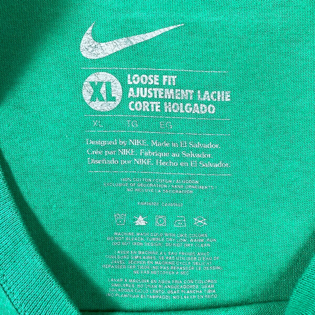 NIKE ナイキ スウォッシュロゴ プリントTシャツ メンズXL 古着 ビッグロゴ 緑色【Tシャツ】/グリーン【SS50】