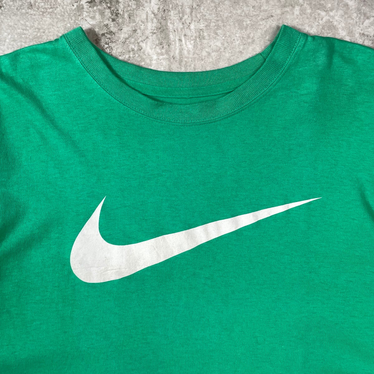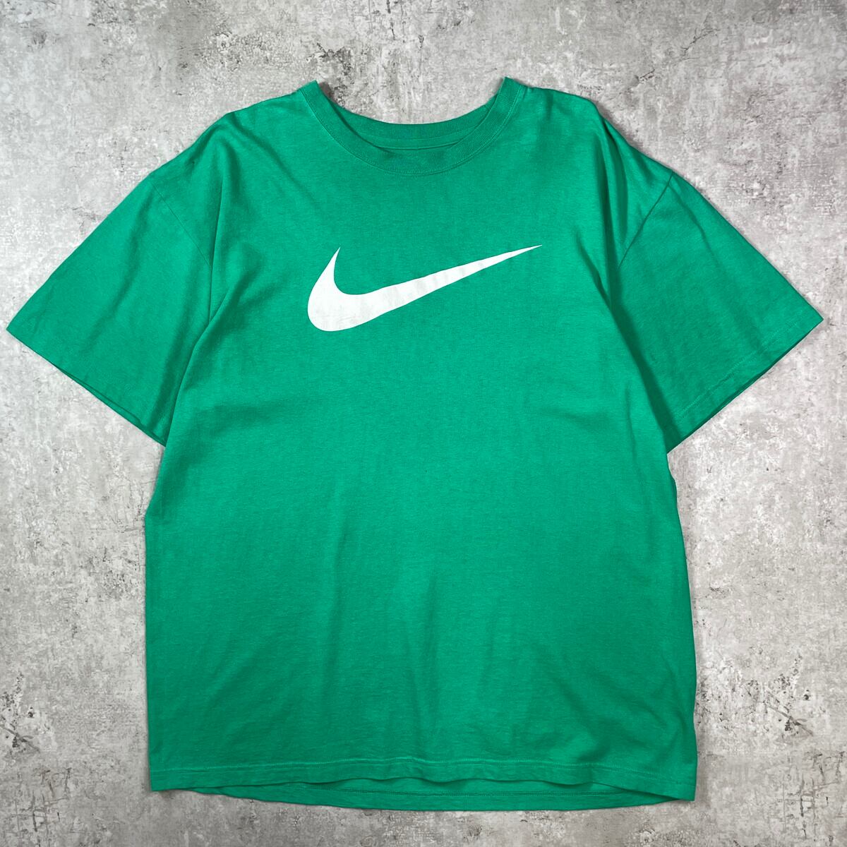 ■NIKE ナイキ スウォッシュロゴ プリントTシャツ メンズXL 古着 ビッグロゴ 緑色【Tシャツ】/グリーン
