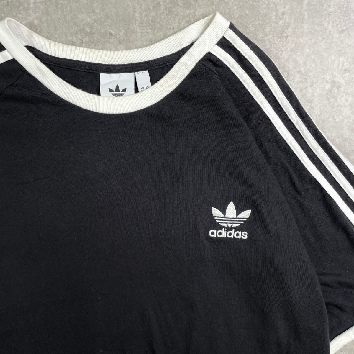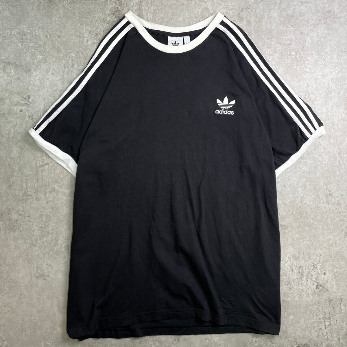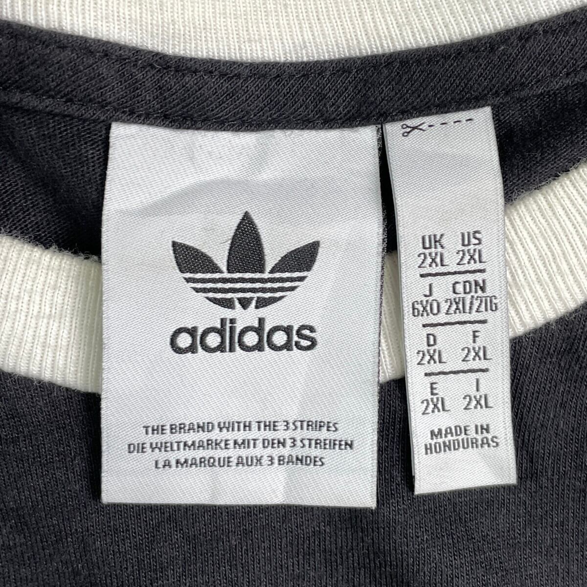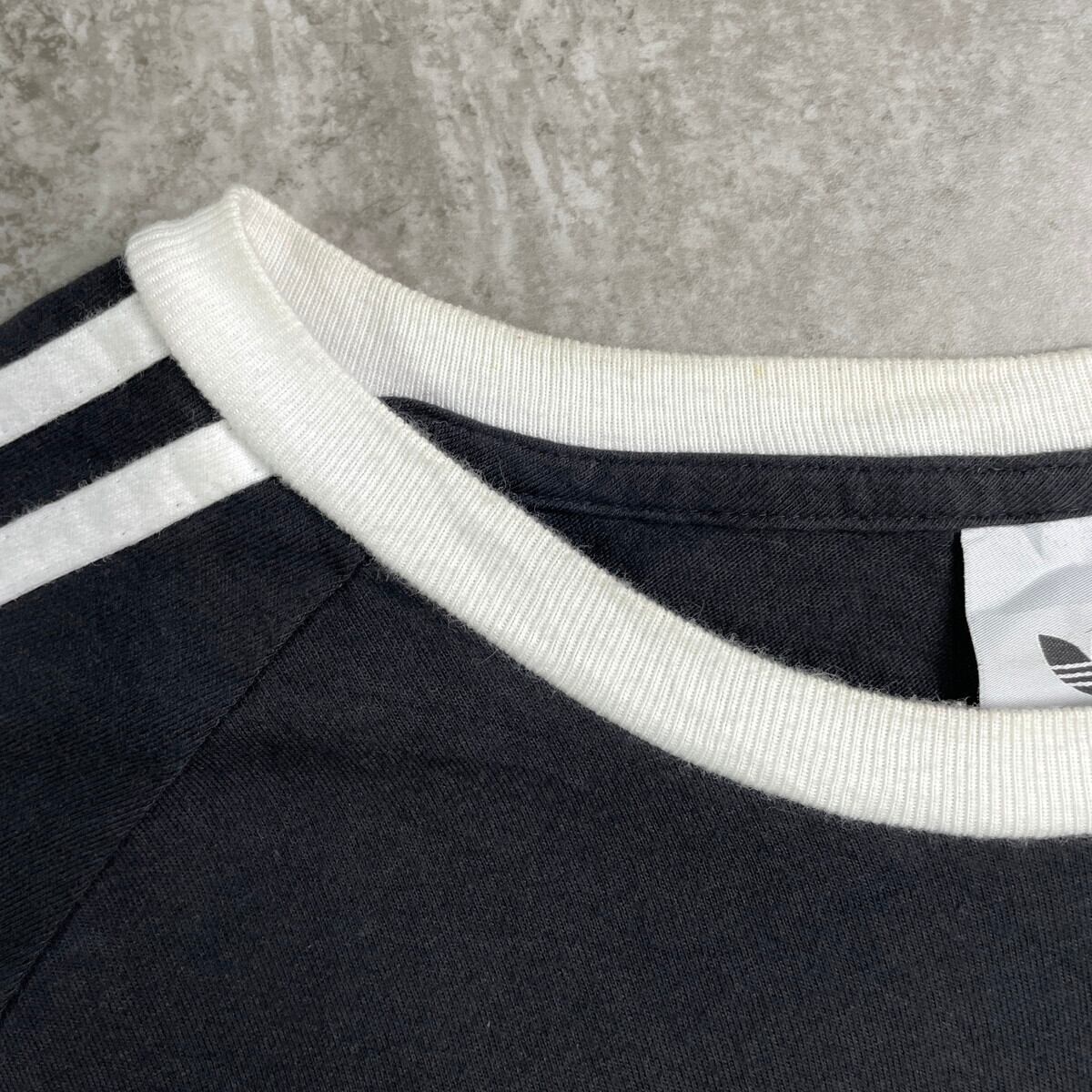 adidas originals アディダス リンガーTシャツ メンズ2XL レディース 古着 ラグランスリーブ トレフォイルロゴ ワンポイント刺繍ロゴ スリーストライプ ホワイト×ブラック【Tシャツ】/ブラック【SS50】