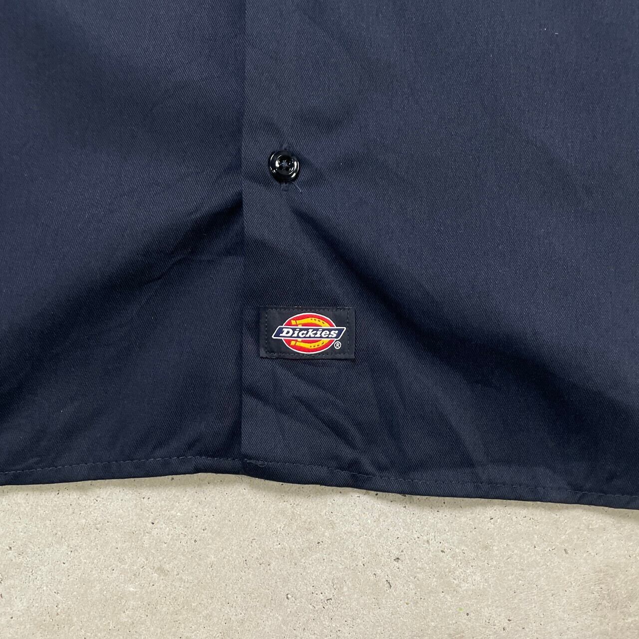 ■DEADSTOCK NOS Dickies ディッキーズ ワークシャツ 半袖シャツ STILL N THE HOOD ロゴ刺繍 メンズXL 古着 紺色【半袖シャツ】/ネイビー