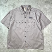 Dickies ディッキーズ 半袖 ワークシャツ 企業ロゴ刺繍 メンズ2XL 古着 ビッグサイズ 大きいサイズ グレージュ【半袖シャツ】/ベージュ【SS50】