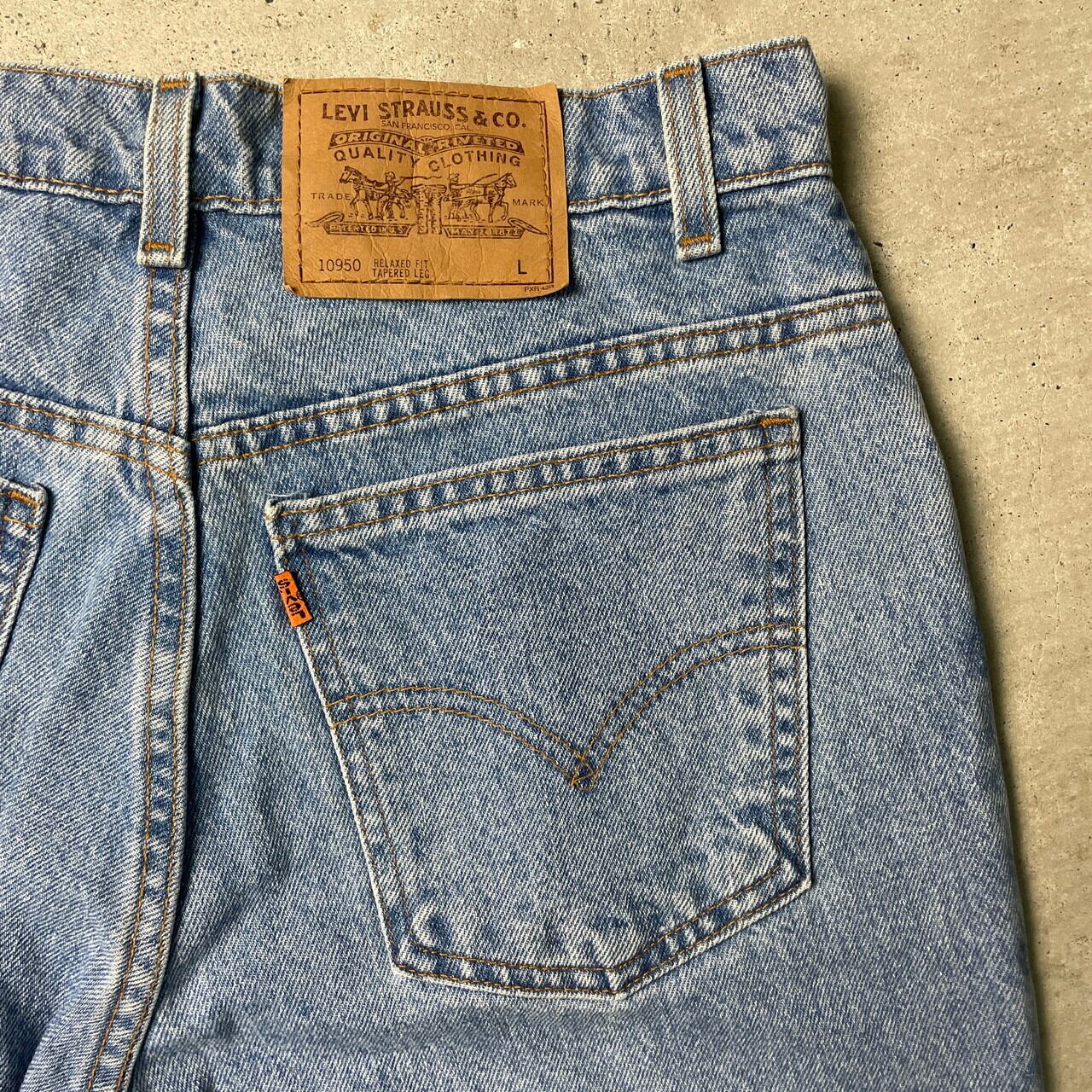 90年代 USA製 Levi's リーバイス 10950 テーパード デニムパンツ レディースW31 メンズ 古着 90s ビンテージ ヴィンテージ RELAXED FIT TAPERED LEG 薄色【デニムパンツ】/ブルー
