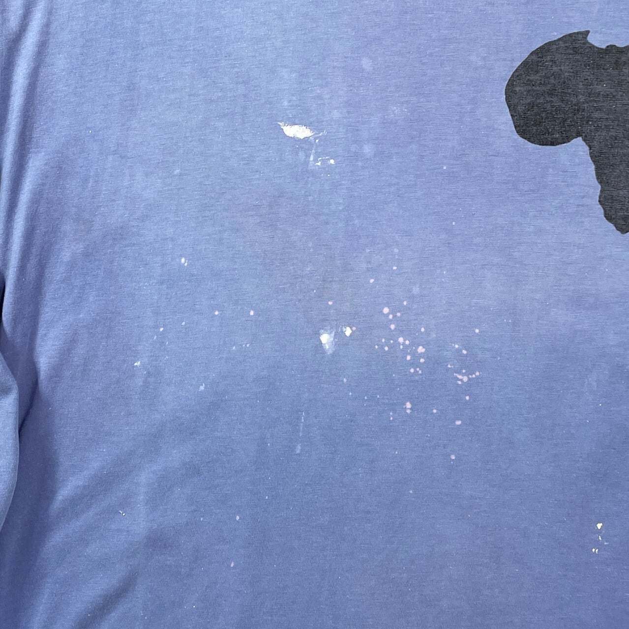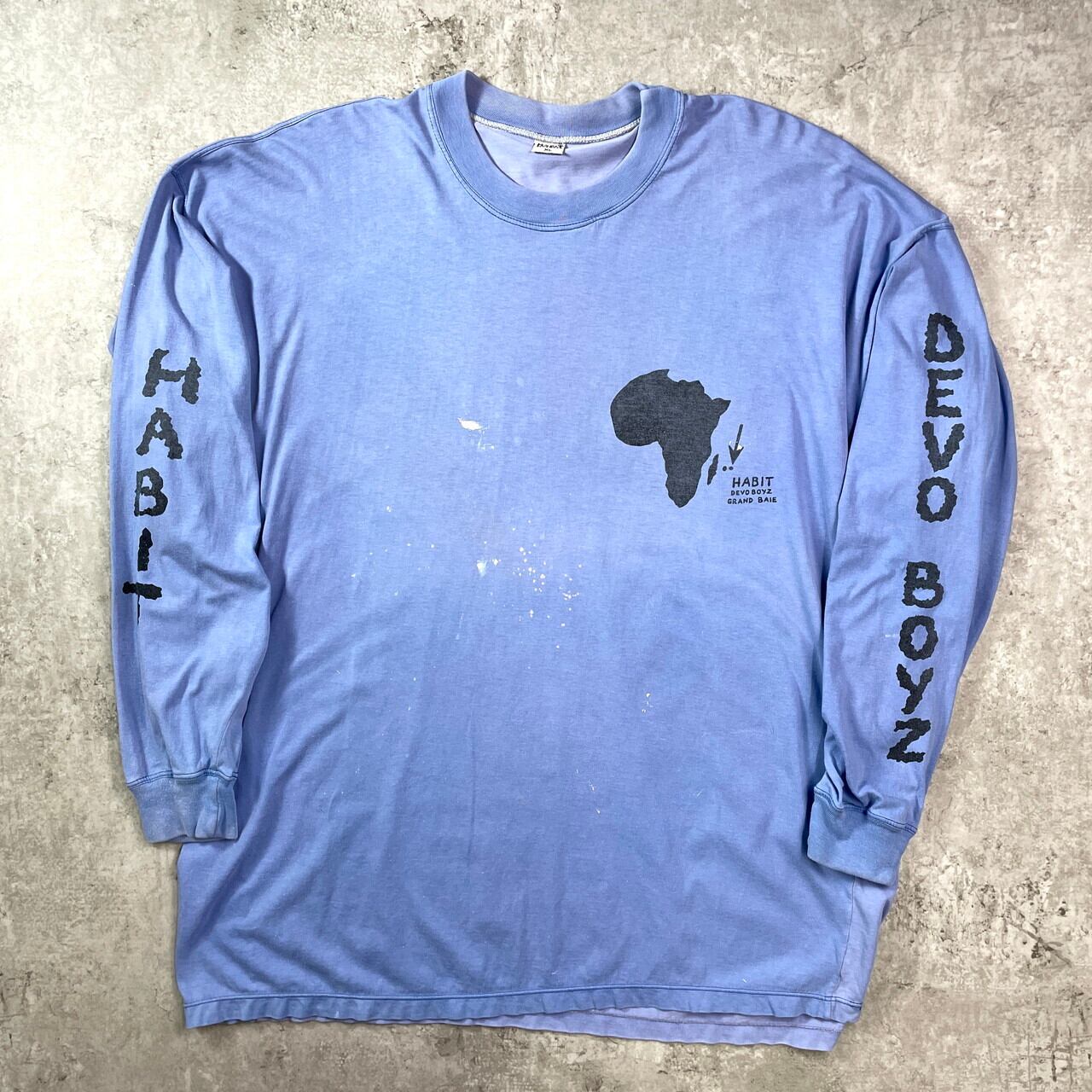 90年代 HABIT DEVO BOYZ アートプリント 袖プリ ロングTシャツ ロンT メンズXL 古着 雰囲気系 ボロ 90s VINTAGE ヴィンテージ アフリカン フェードブルー 青【ロングTシャツ】/ブルー