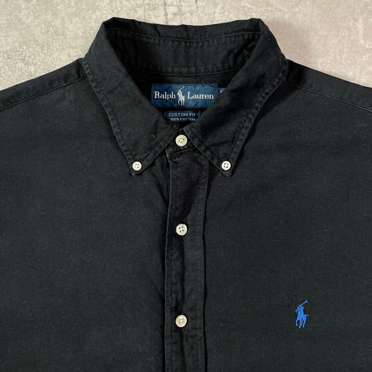 90年代 Ralph Lauren ラルフローレン CUSTOM FIT 無地 ブランク メンズXL相当 古着 90s アメカジ VINTAGE ヴィンテージ B.D ボタンダウンシャツ ワンポイントロゴ刺繍 黒色【長袖シャツ】/ブラック