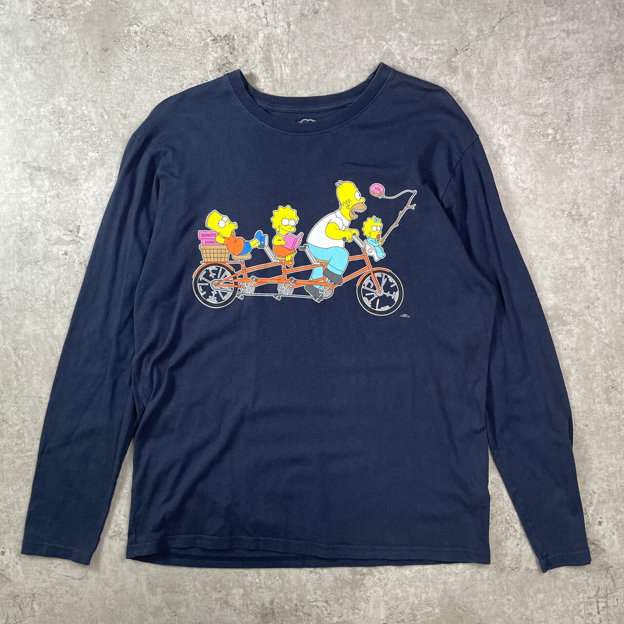 ■THE SIMPSONS シンプソンズ キャラクタープリント ロングTシャツ ロンT メンズL 古着 紺色【ロングTシャツ】/ネイビー