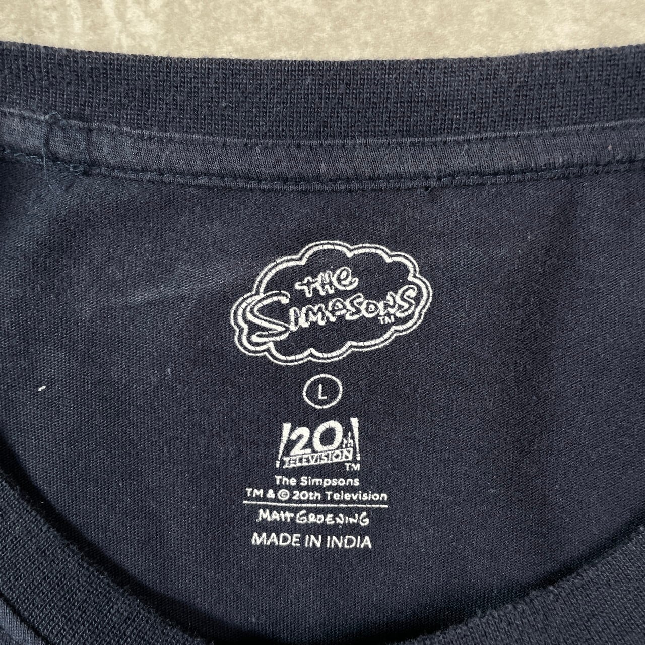 THE SIMPSONS シンプソンズ キャラクタープリント ロングTシャツ ロンT メンズL 古着 紺色【ロングTシャツ】/ネイビー