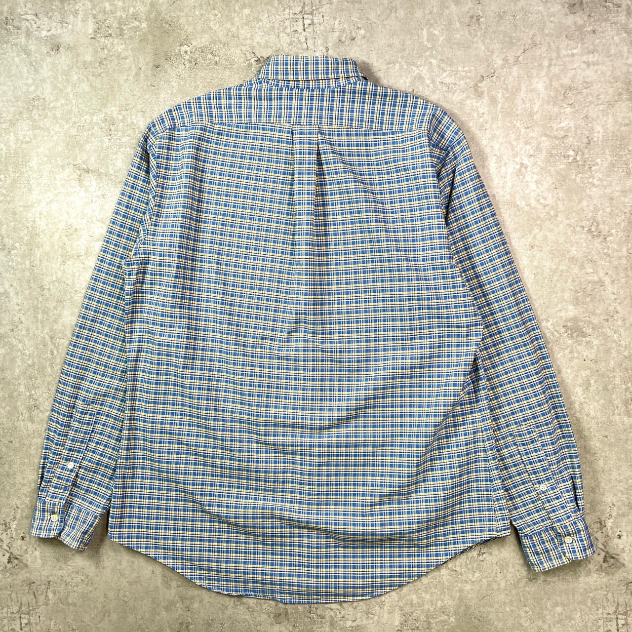 ■Ralph Lauren ラルフローレン CUSTOM FIT チェックシャツ メンズL相当 古着 ヴィンテージ VINTAGE B.D ボタンダウンシャツ グリーン 水色 イエローブラック【長袖シャツ】/マルチカラー
