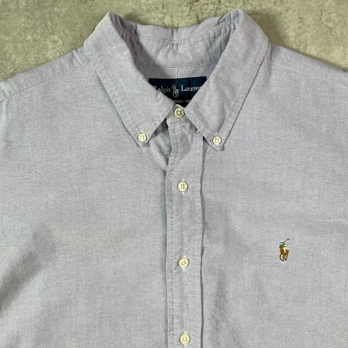 ■Ralph Lauren ラルフローレン CLASSIC FIT 無地 ブランクシャツ メンズXL 古着 ヴィンテージ VINTAGE B.D ボタンダウンシャツ ワンポイントロゴ刺繍 ライトパープル【長袖シャツ】/パープル