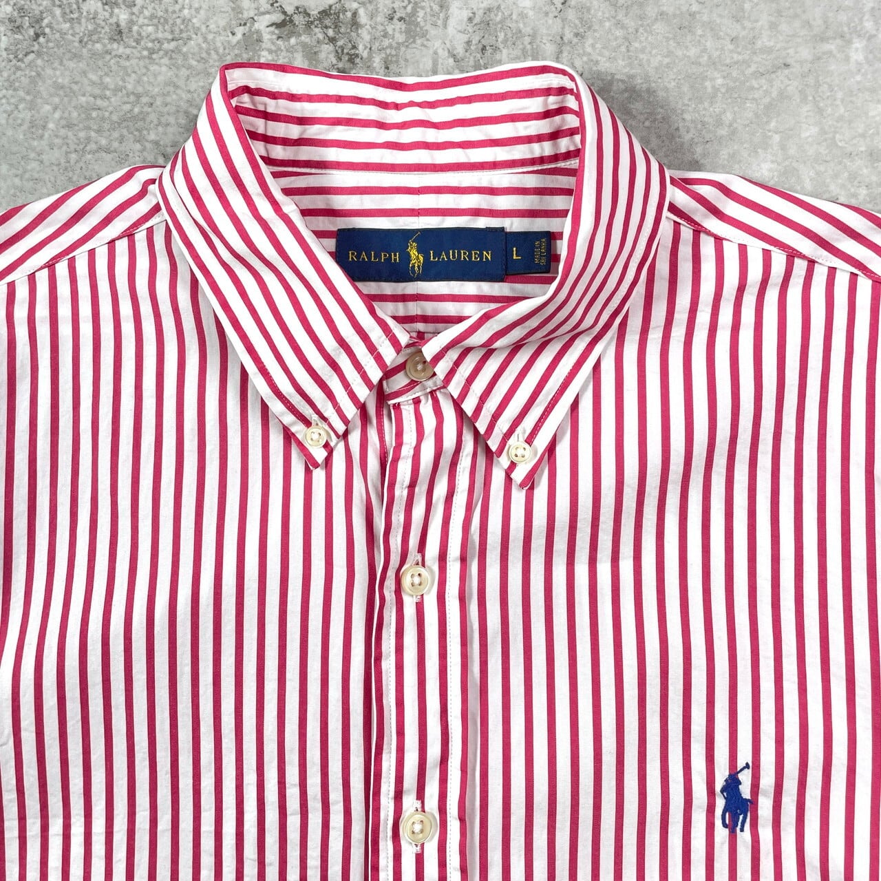 ■Ralph Lauren ラルフローレン CLASSIC FIT キャンディストライプシャツ メンズL 古着 ボタンダウンシャツ ホワイト ピンク【長袖シャツ】