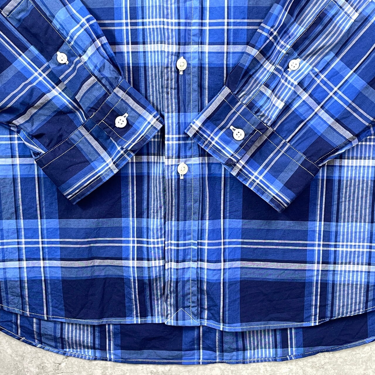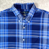 ■Ralph Lauren ラルフローレン CLASSIC FIT チェックシャツ メンズXXL 古着 ボタンダウンシャツ B.D コットンシャツ ブルー ホワイト グレー【長袖シャツ】/マルチカラー