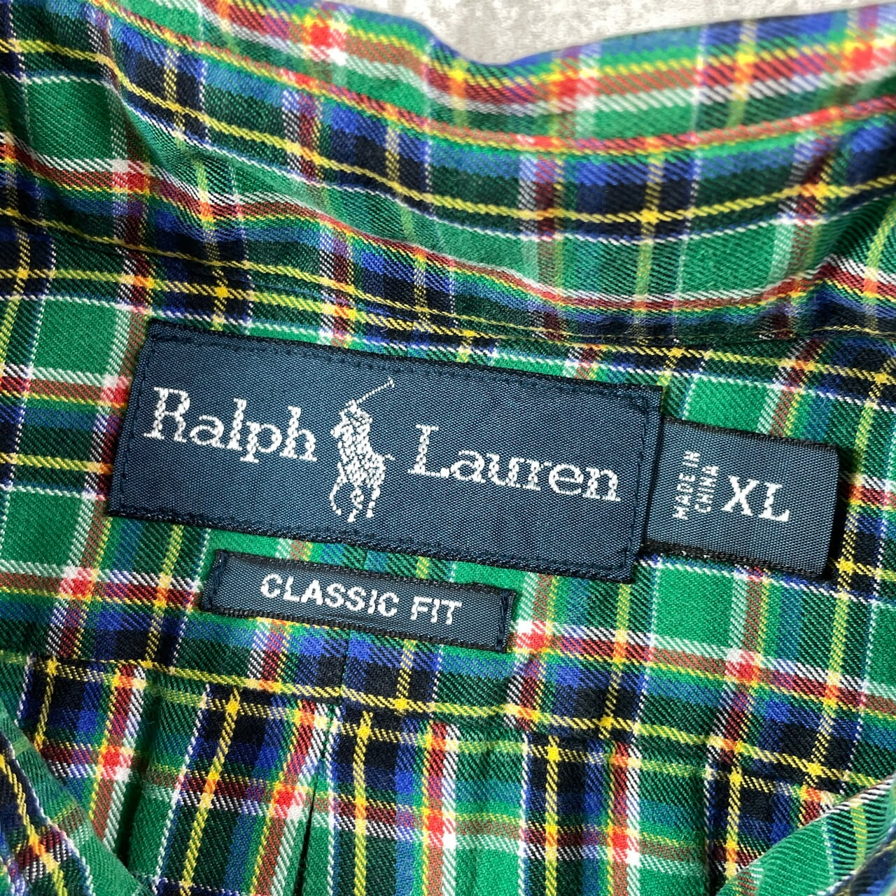Ralph Lauren ラルフローレン CLASSIC FIT ライトネルシャツ チェックシャツ メンズXL 古着 ボタンダウンシャツ B.D コットンシャツ グリーン ブルー イエロー レッド ホワイト【長袖シャツ】/マルチカラー