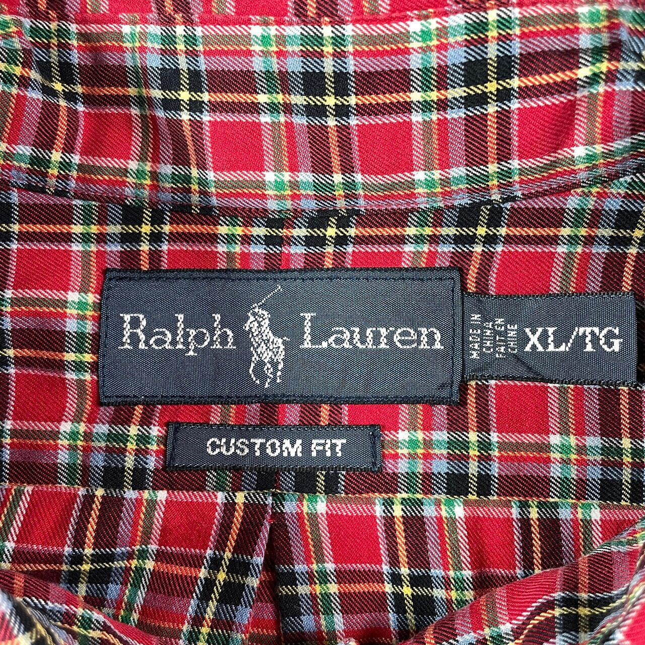 Ralph Lauren ラルフローレン CUSTOM FIT ライトネルシャツ チェックシャツ メンズXL 古着 ボタンダウンシャツ B.D コットンシャツ レッド グリーン ライトブルー イエロー ホワイト【長袖シャツ】/マルチカラー