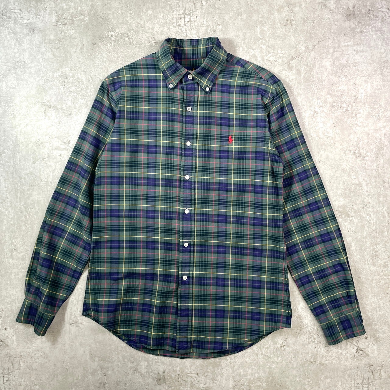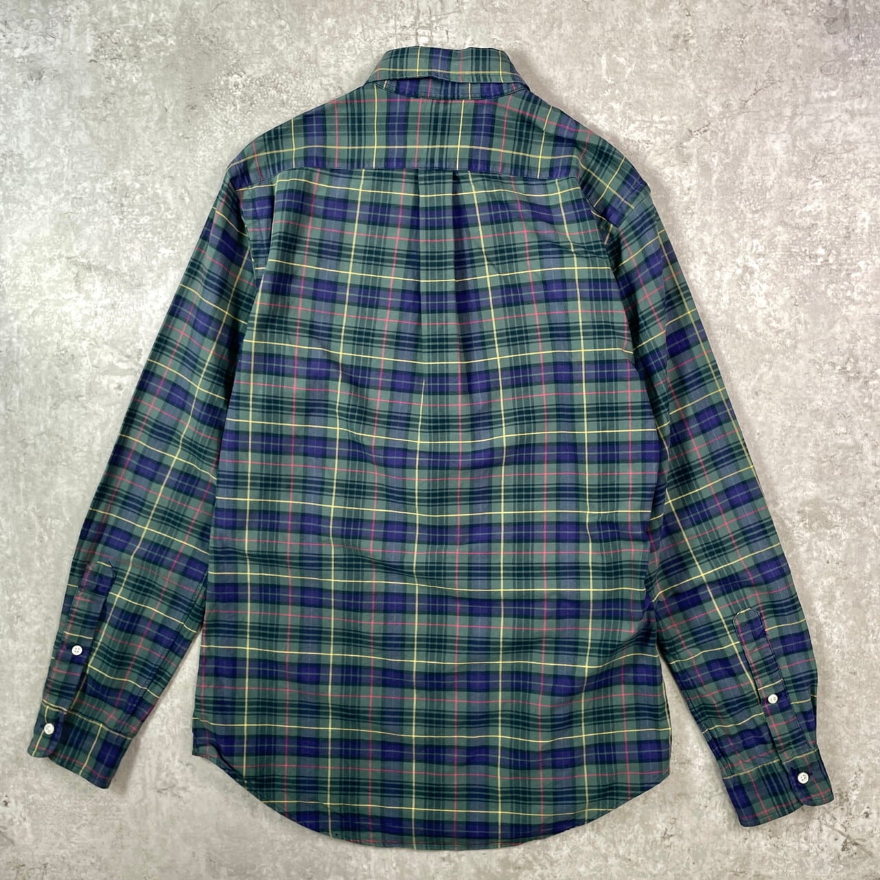 ■Ralph Lauren ラルフローレン CUSTOM FIT チェックシャツ メンズM相当 古着 ボタンダウンシャツ B.D コットンシャツ グリーン パープル イエロー レッド【長袖シャツ】/マルチカラー