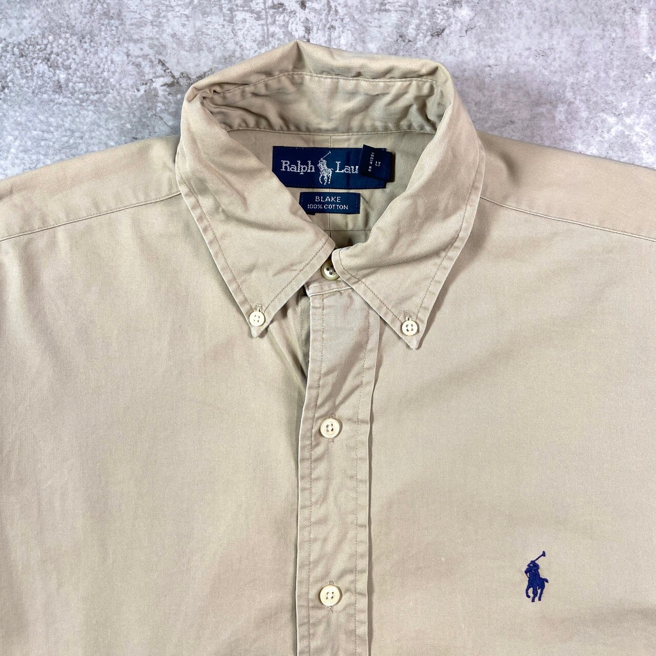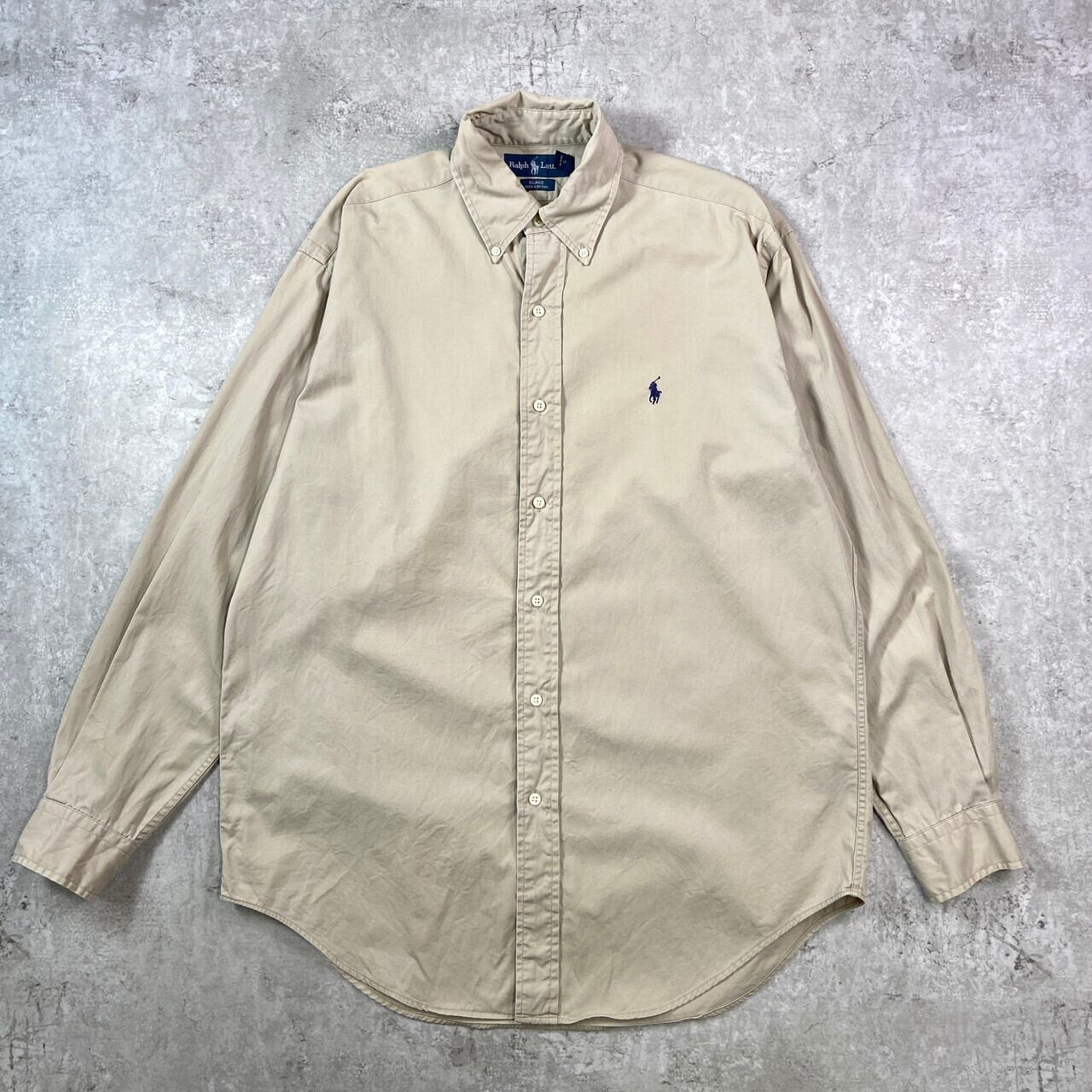 90年代 Ralph Lauren ラルフローレン BLAKE ボタンダウンシャツ コットンシャツ メンズL相当 古着 90s ヴィンテージ VINTAGE【長袖シャツ】/ベージュ