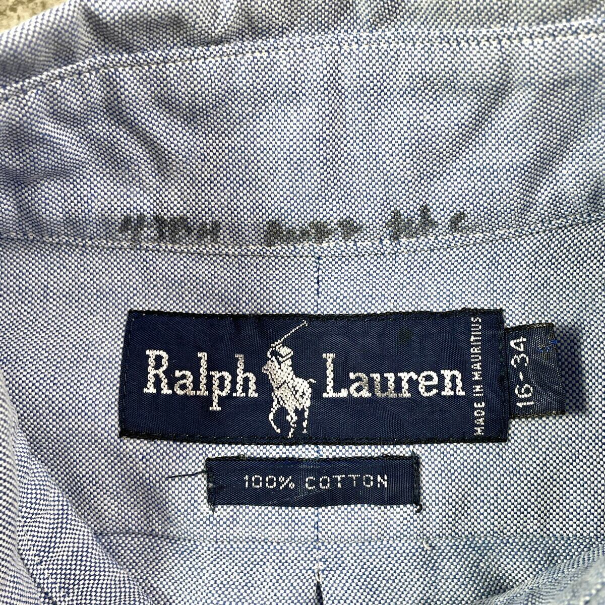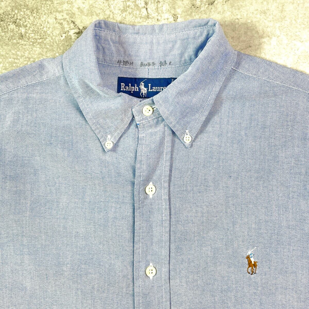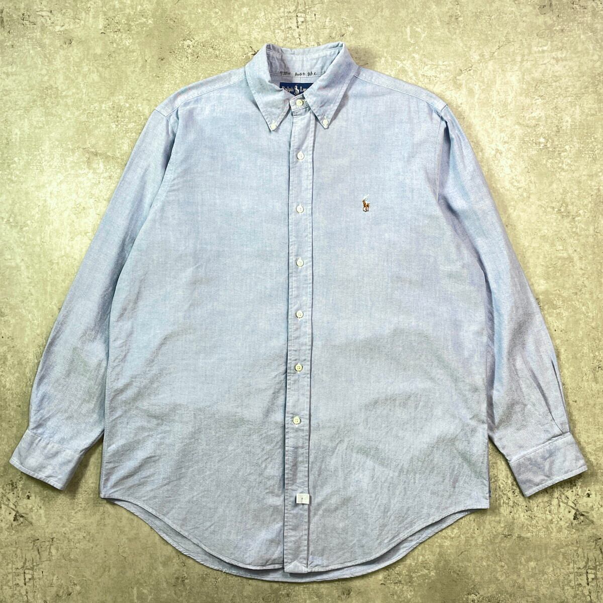 90年代 Ralph Lauren ラルフローレン オックスフォードシャツ メンズXL相当 古着 90s VINTAGE ヴィンテージ ボタンダウンシャツ B.D ワンポイントロゴ刺繡 コットンシャツ ライトブルー【長袖シャツ】/ブルー