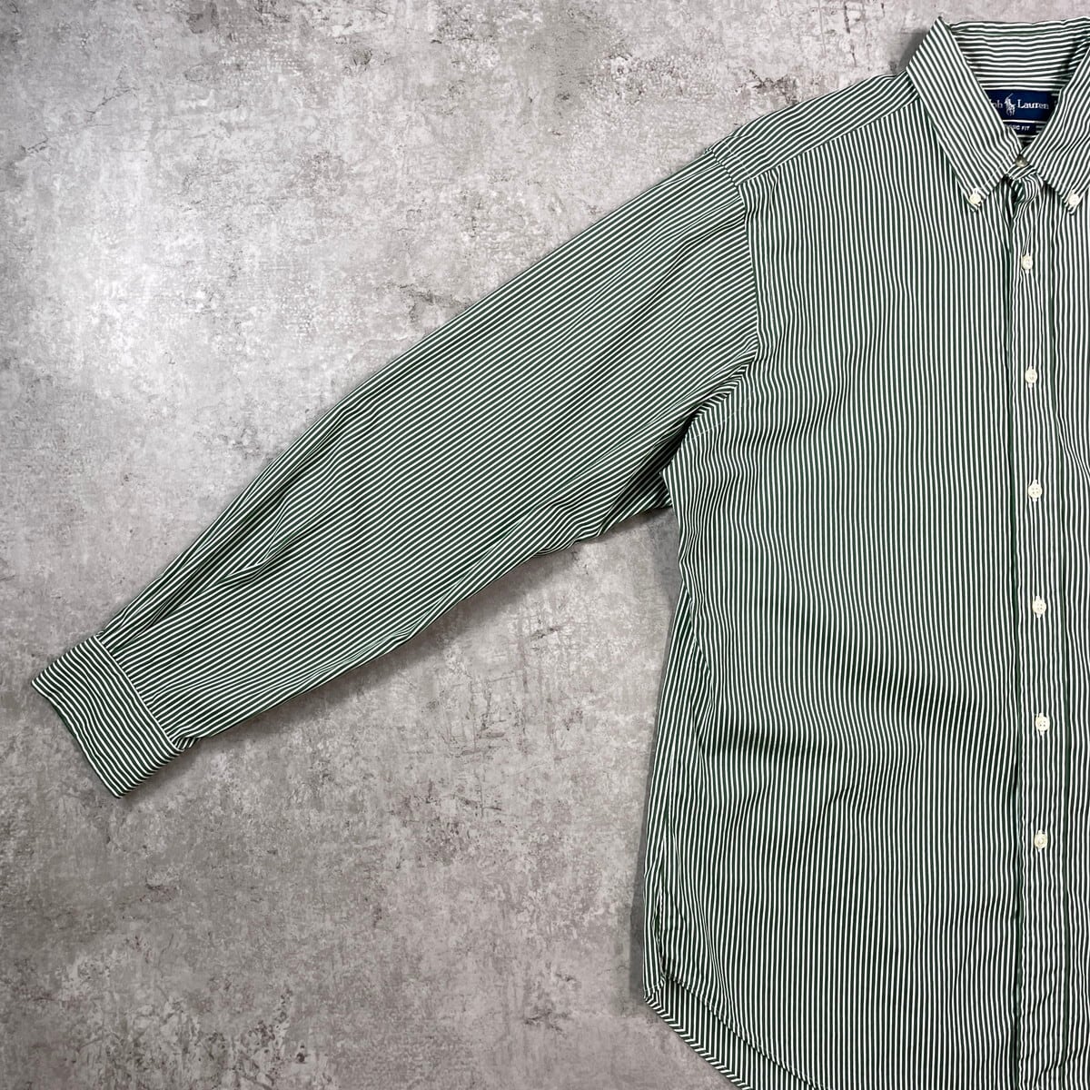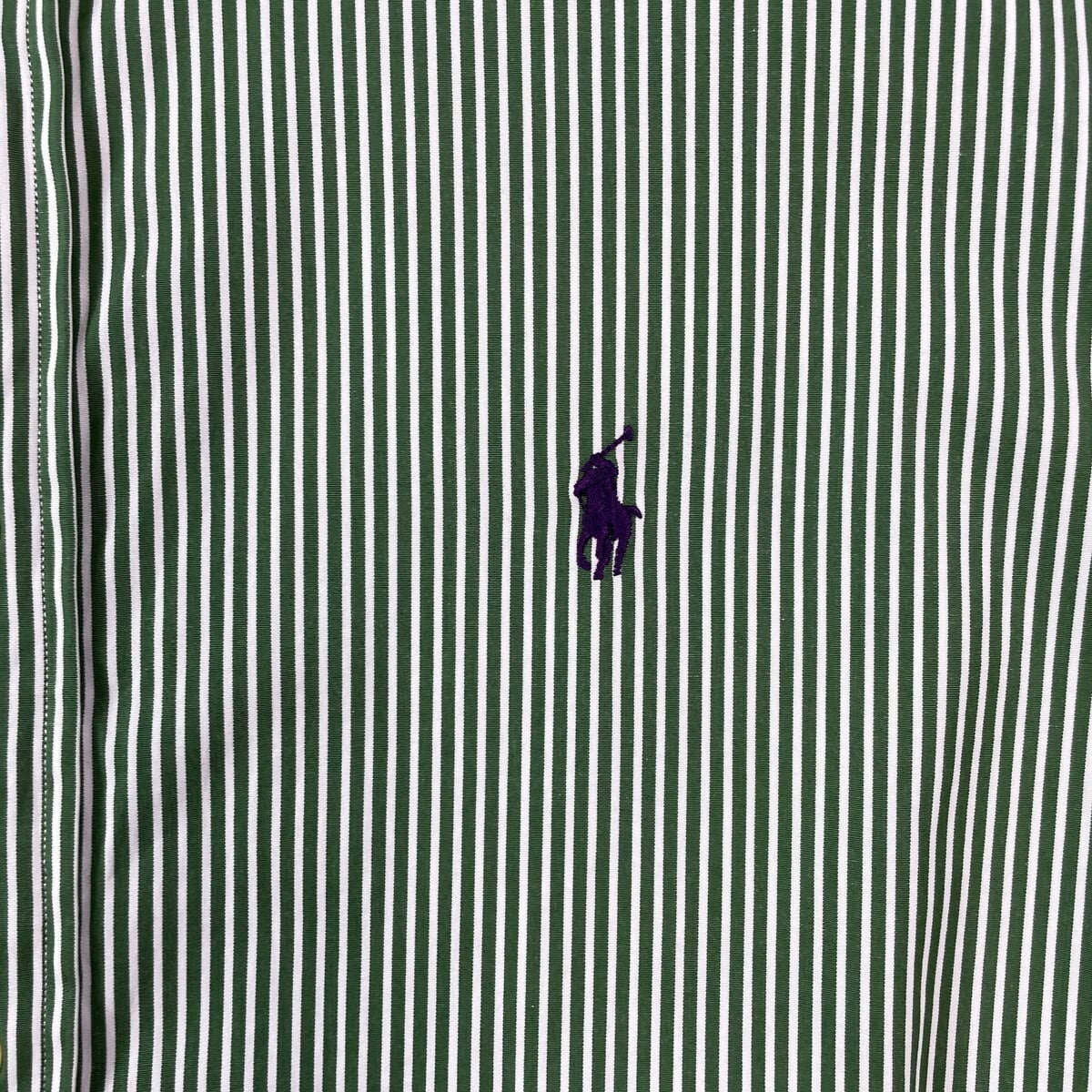 90年代 Ralph Lauren ラルフローレン CLASSIC FIT ストライプシャツ メンズXL相当 古着 90s ヴィンテージ VINTAGE B.D ボタンダウンシャツ ワンポイントロゴ刺繍 グリーン ホワイト【長袖シャツ】/グリーン