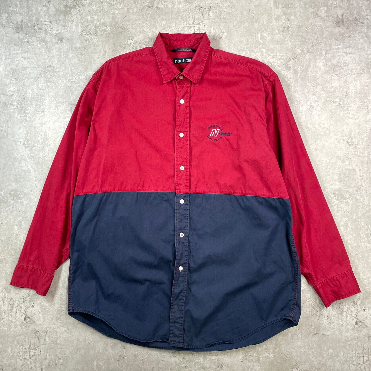 90年代 NAUTICA ノーティカ バイカラー セーリングシャツ メンズXL相当 古着 バック刺繍 90s ヴィンテージ VINTAGE 赤×紺色【長袖シャツ】/マルチカラー