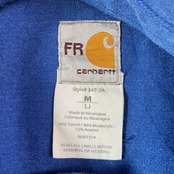 Carhartt カーハート FR 長袖 ワークシャツ メンズXL相当 古着 ボタンダウン CBRES 企業ロゴ刺繍 青色【長袖シャツ】/ブルー【VS30-4】