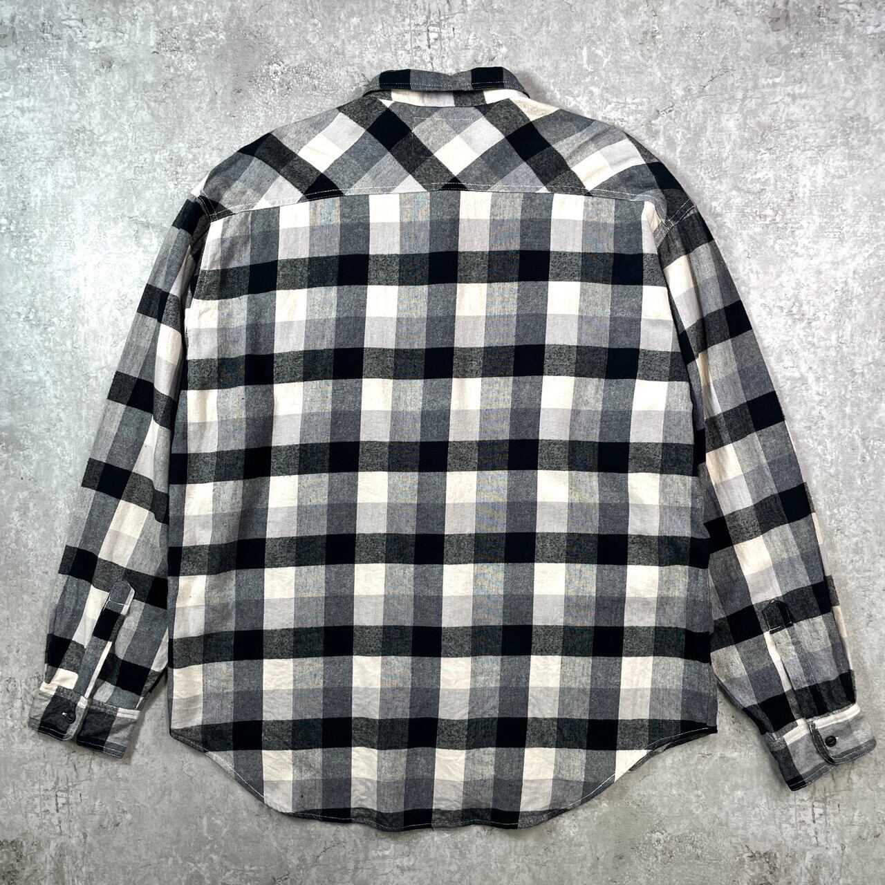 90年代 Levi's リーバイス チェック柄 長袖 フランネルシャツ メンズ2XL 古着 90s VINTAGE ヴィンテージ アメカジ ネコ目ボタン ビッグサイズ 大きいサイズ ブラック ホワイト グレー 黒 白【長袖シャツ】/マルチカラー