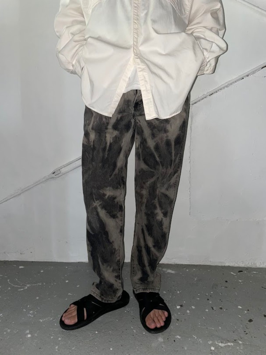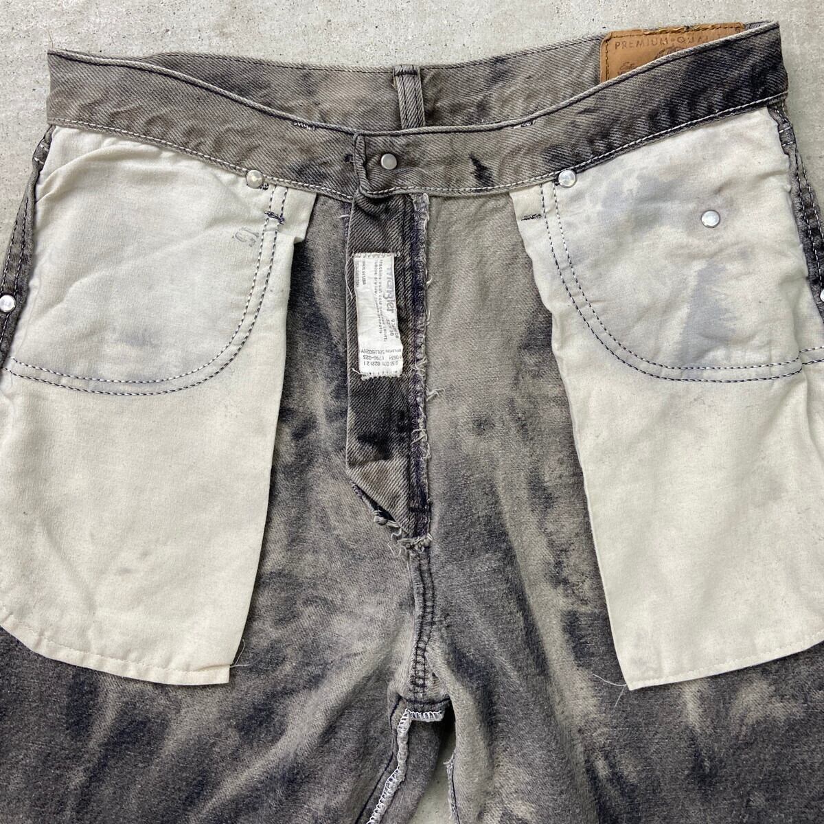 【original】リメイク 90年代 USA製 Wrangler ラングラー タイダイ デニムパンツ メンズW30相当 古着 90s VINTAGE ヴィンテージ テーパードデニム ブラック×アイボリー【デニムパンツ】/ブラック