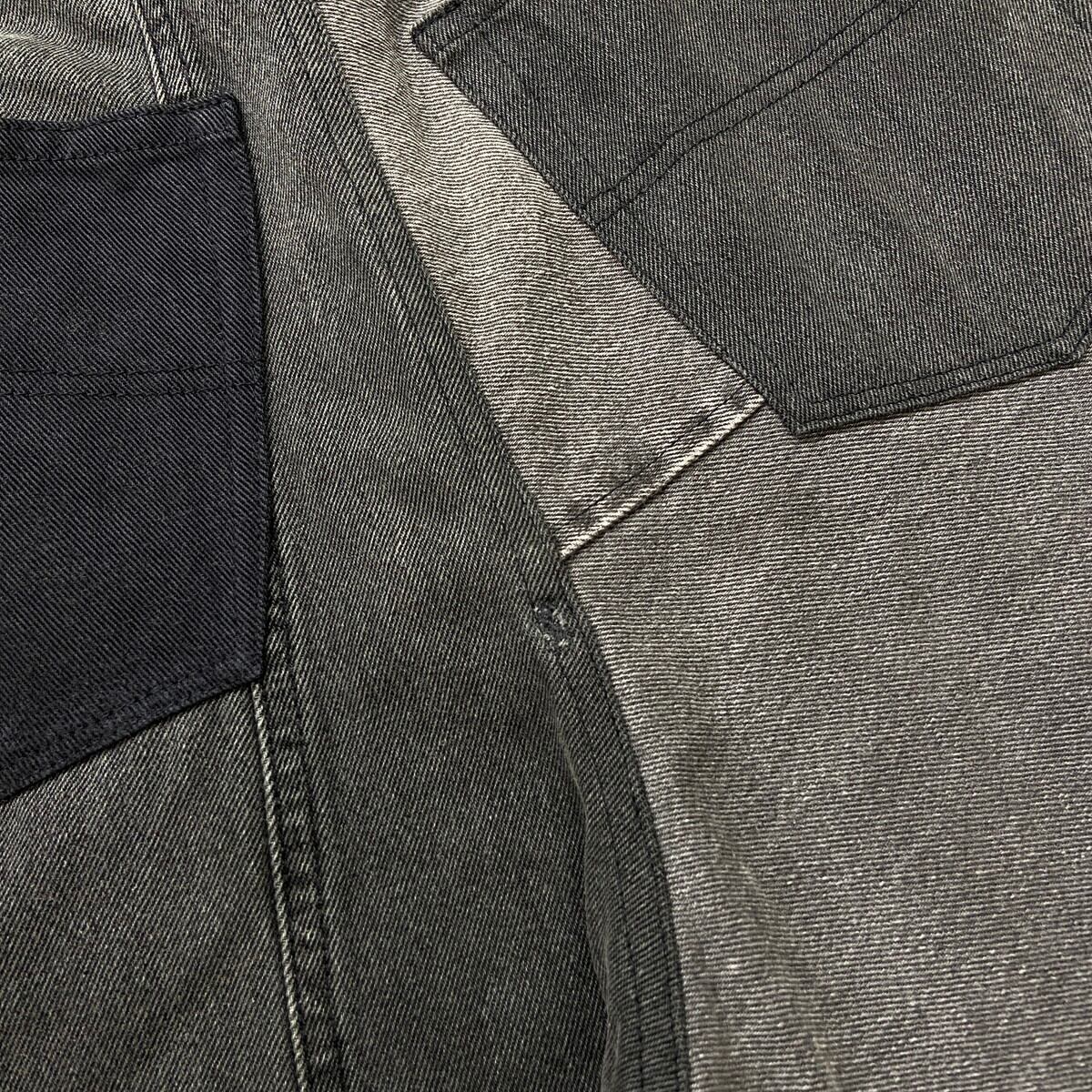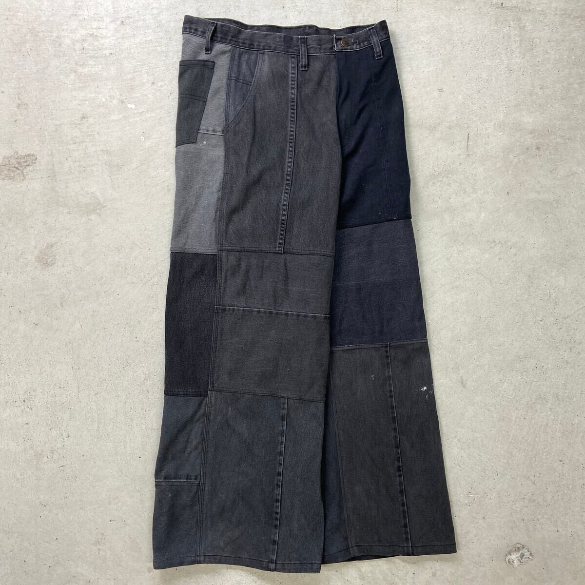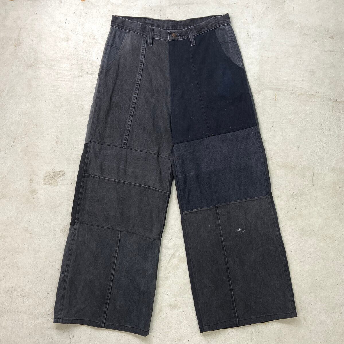 【original】リメイク パッチワーク バギーデニムパンツ メンズW32相当 レディース 古着 切り替えデザイン ユニセックス 黒色【デニムパンツ】/ブラック